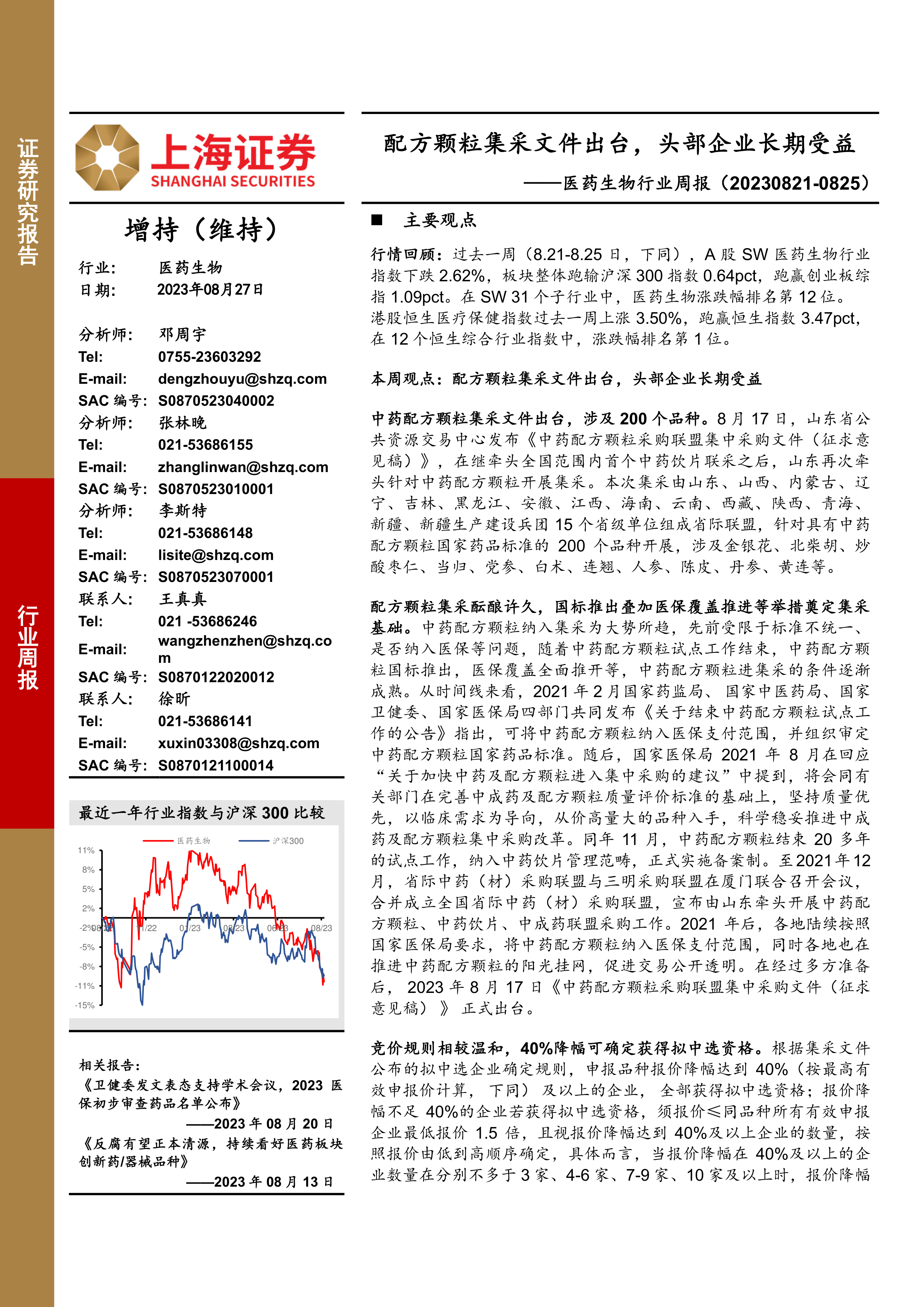 本报告主要围绕中药配方颗粒集采政策的分析展开,并结合市场行情和个股表现进行解读。