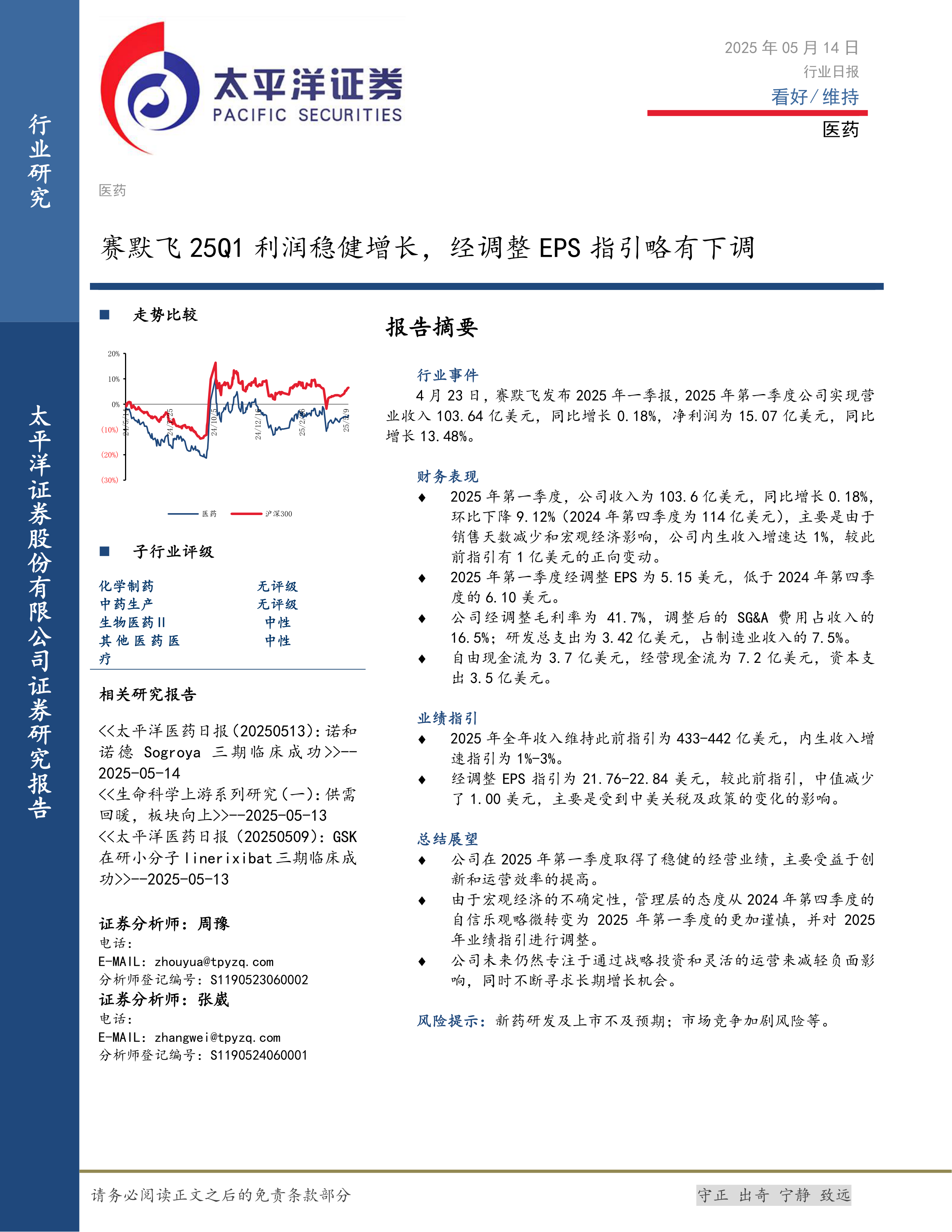 医药行业日报:赛默飞25Q1利润稳健增长,经调整EPS指引略有下调
