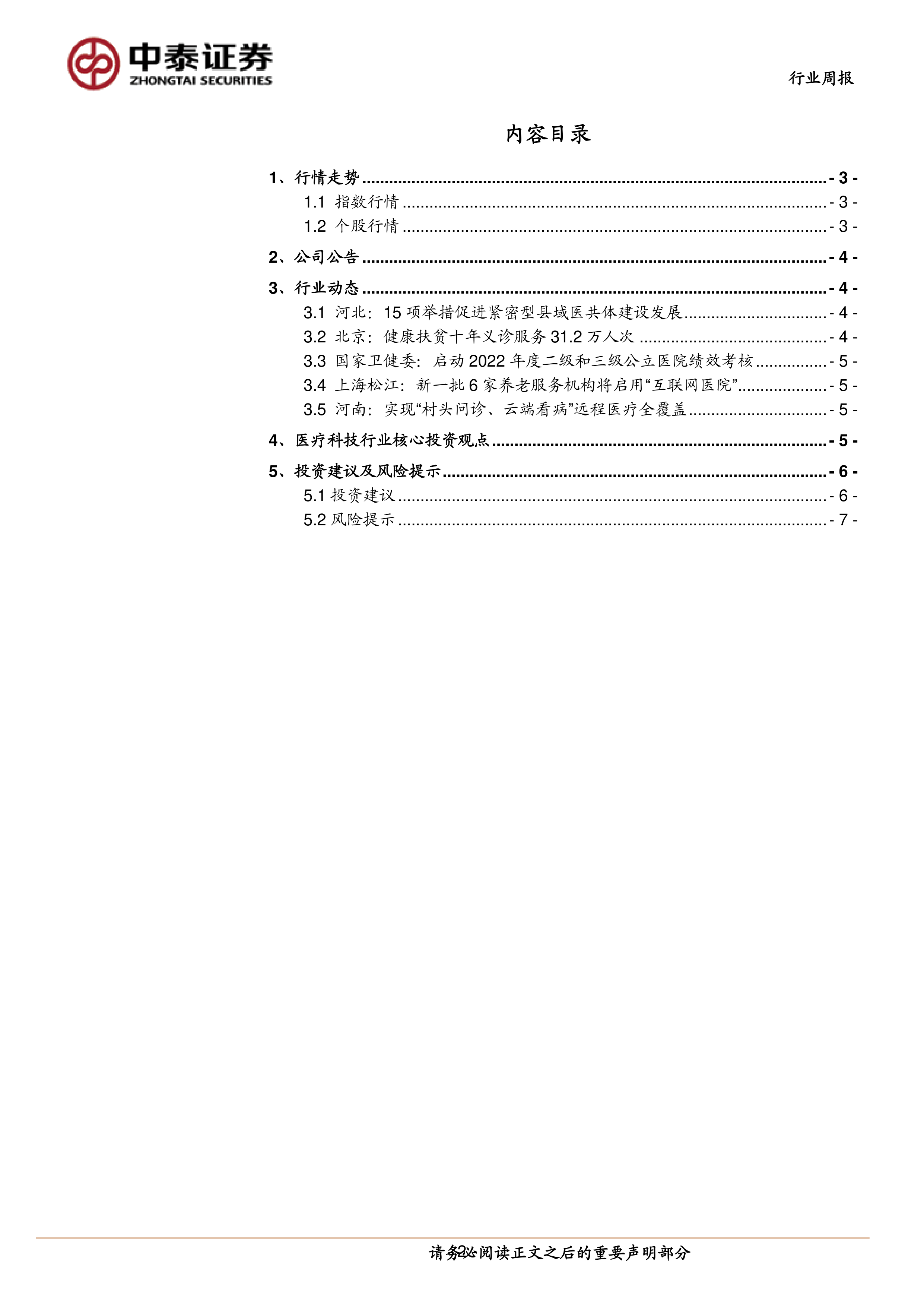 本报告的核心观点是:河北省大力推进紧密型县域医共体建设,以及河南省远程医疗全覆盖的实现,将显著推动县域医疗IT需求的释放,并为医疗科技行业带来新的增长机遇。报告同时分析了医疗IT、互联网医疗等细分板块的市场现状、发展趋势及投资建议,并对相关上市公司进行了评级和推荐。