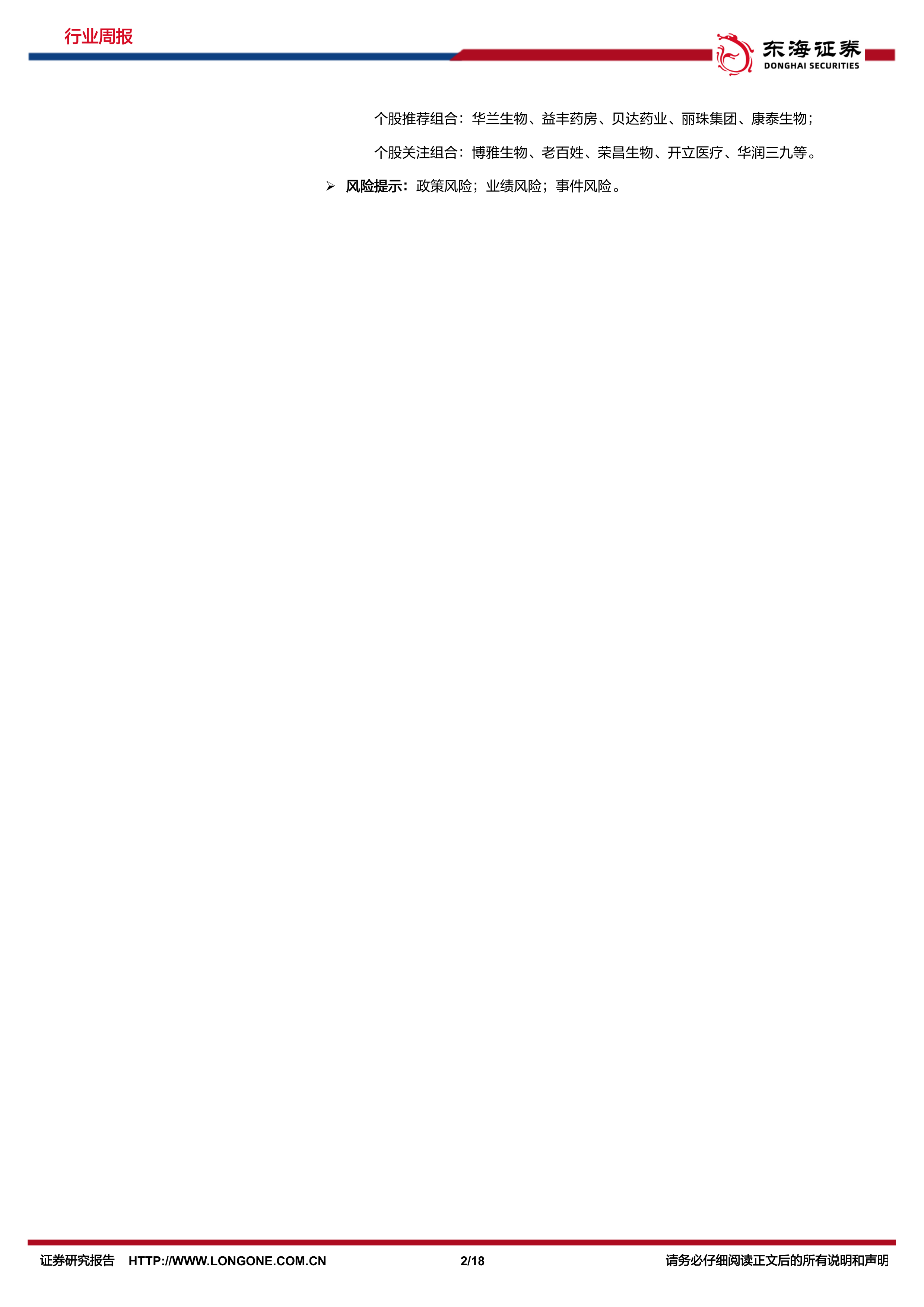 个股推荐组合:华兰生物、益丰药房、贝达药业、丽珠集团、康泰生物;