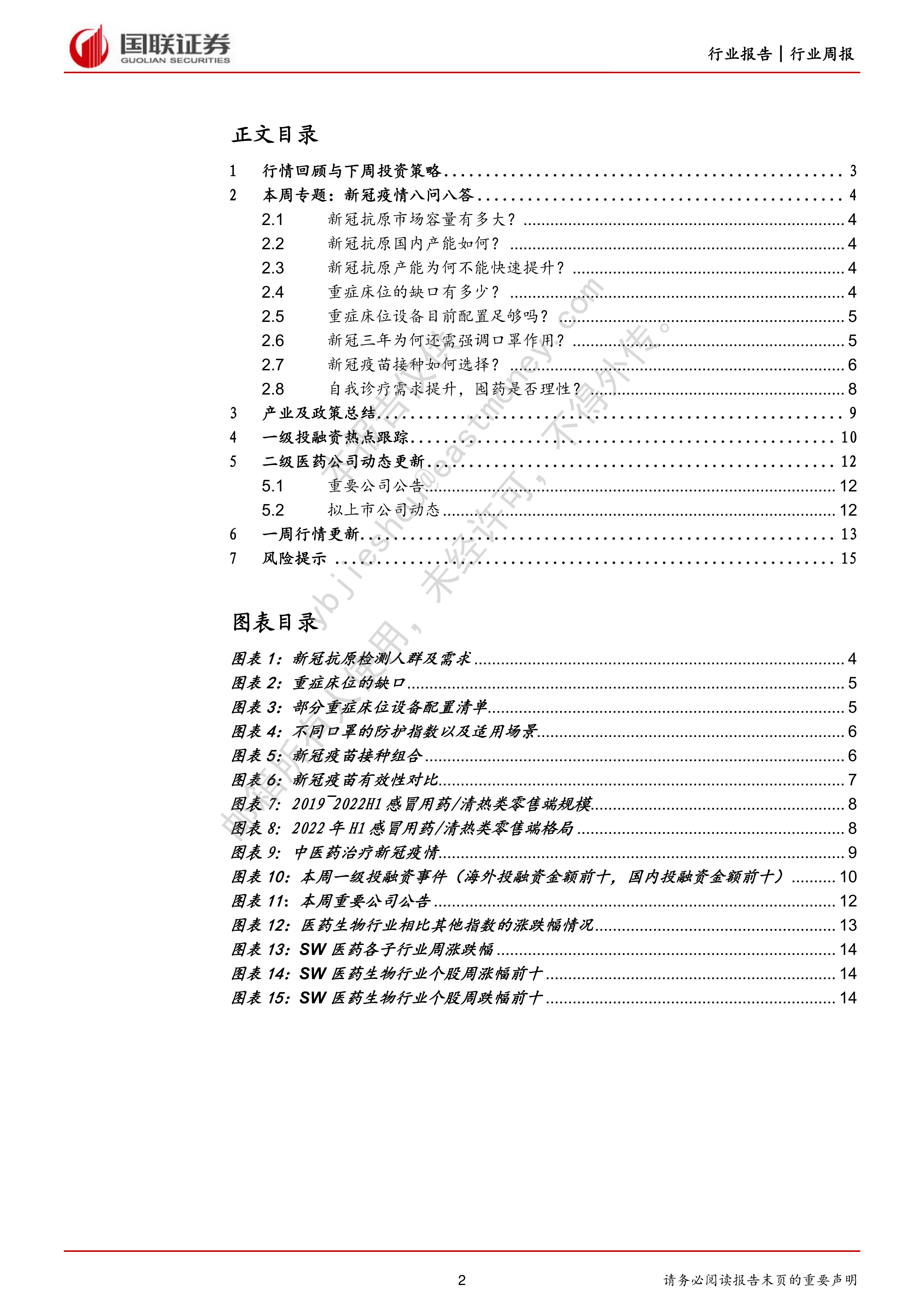 针对疫情管控放开后,1)新冠抗原检测的使用场景、现有产能情况和产能限制因素;2)三级医院重症床位缺口、扩张计划和刚需医疗设备;3)疫情预防所需的N95口罩供给情况、新冠疫苗现有组合与有效性比对;4)短期医院诊疗资源紧张情况下,非危重病症患者自我诊疗相关中药OTC产品的放量预期这四大主题进行了评价与总结。