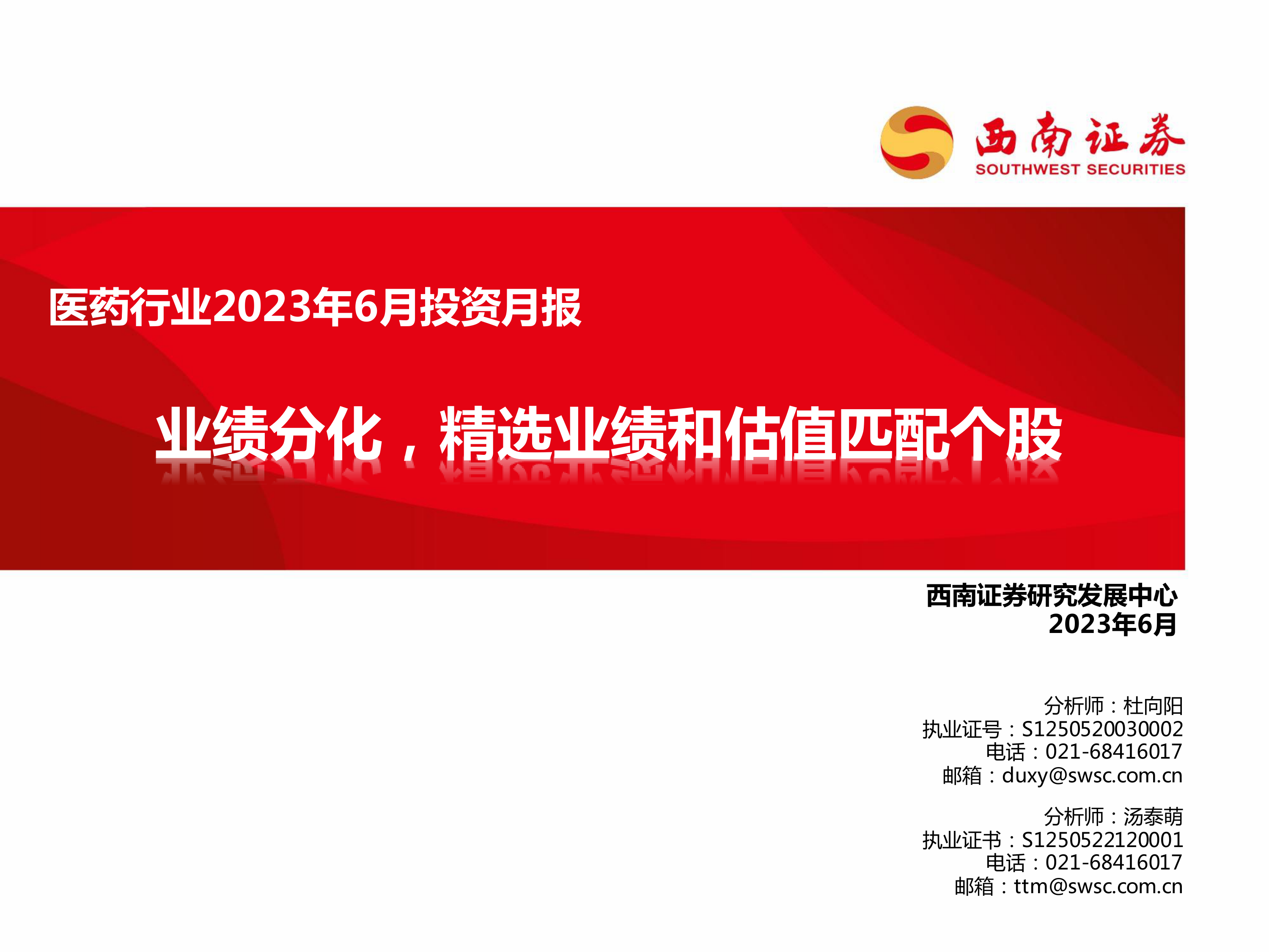 医药行业2023年6月投资月报:业绩分化,精选业绩和估值匹配个股
