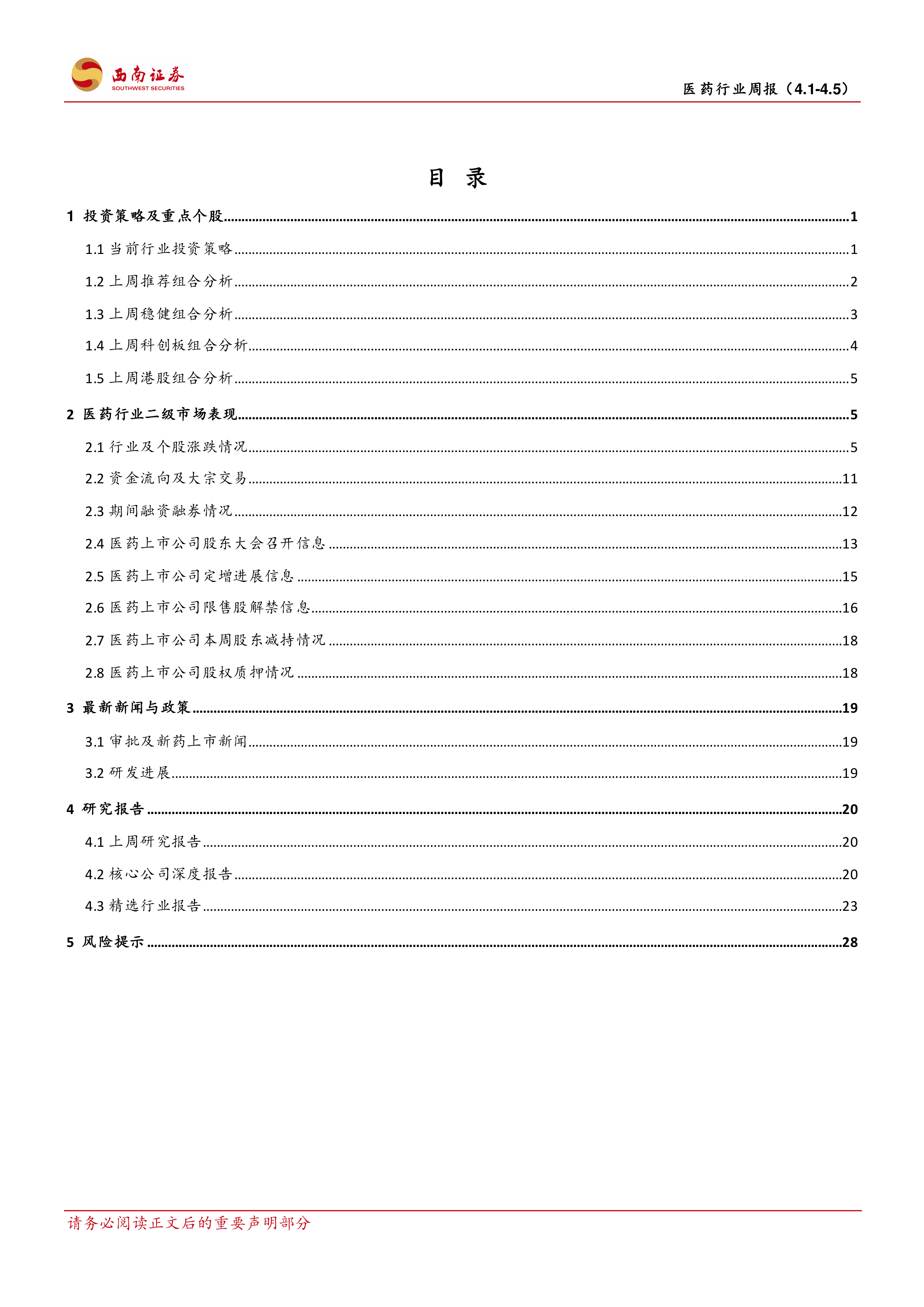 风险提示:医药行业政策风险超预期;研发进展不及预期风险;业绩不及预期风险。