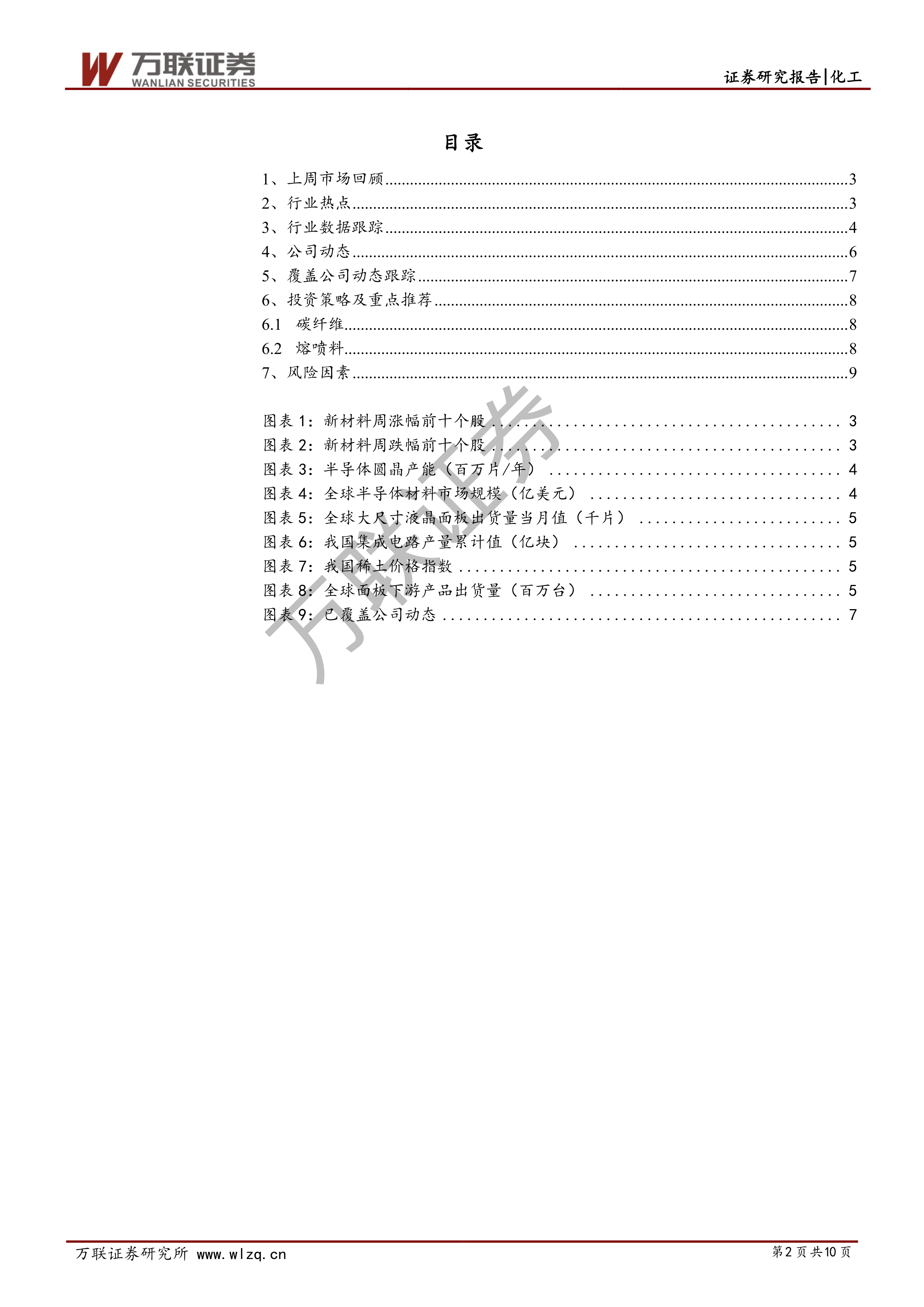 投资建议:建议关注2条主线:1.随5G、新基建建设进程加速而逐步实现国产替代的新材料,如碳纤维、半导体材料、显示材料等;2.政策面强劲支撑下,市场需求持续放量的环保材料,如汽车尾气处理相关材料、可降解塑料等。