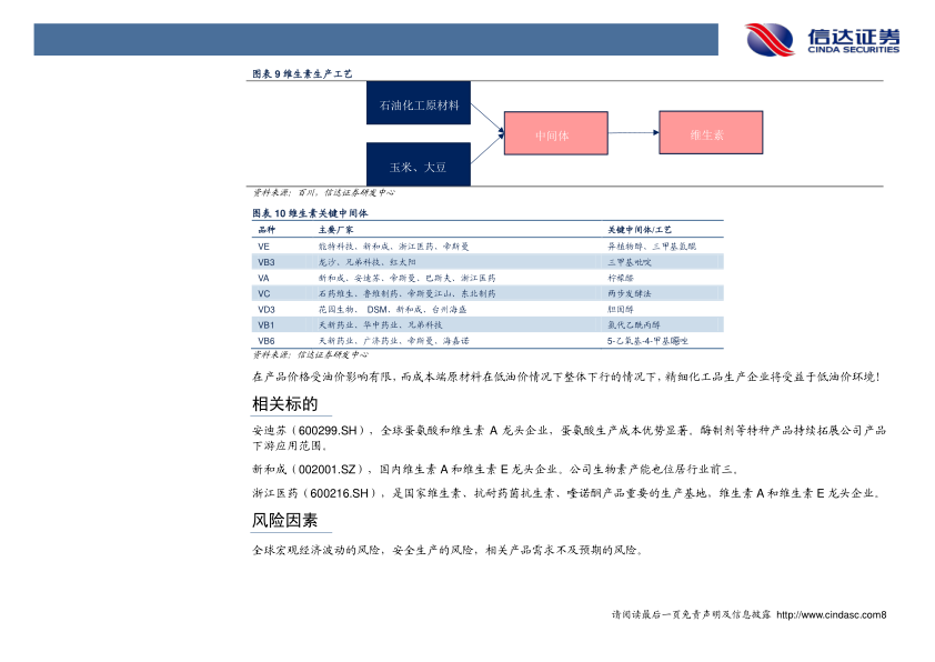 报告最后列举了安迪苏、新和成、浙江医药等相关上市公司,并指出了全球宏观经济波动、安全生产、产品需求不及预期等风险因素。