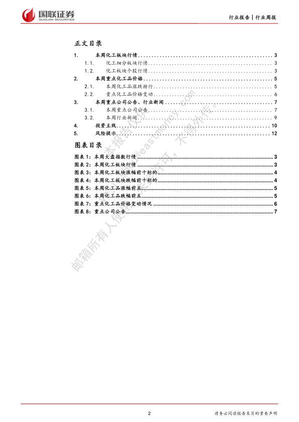 随着疫情冲击减退与中美贸易关系逐步回暖,以及我国工业产业链持续完善升级,我们看好化工行业前景,给予 “强于大市”评级。持续推荐买入低估值、高增长标的花园生物、泰和科技、中曼石油、 梅花生物、 宏柏新材、 润禾材料、北清环能;关注永东股份、 黑猫股份、 岳阳兴长。