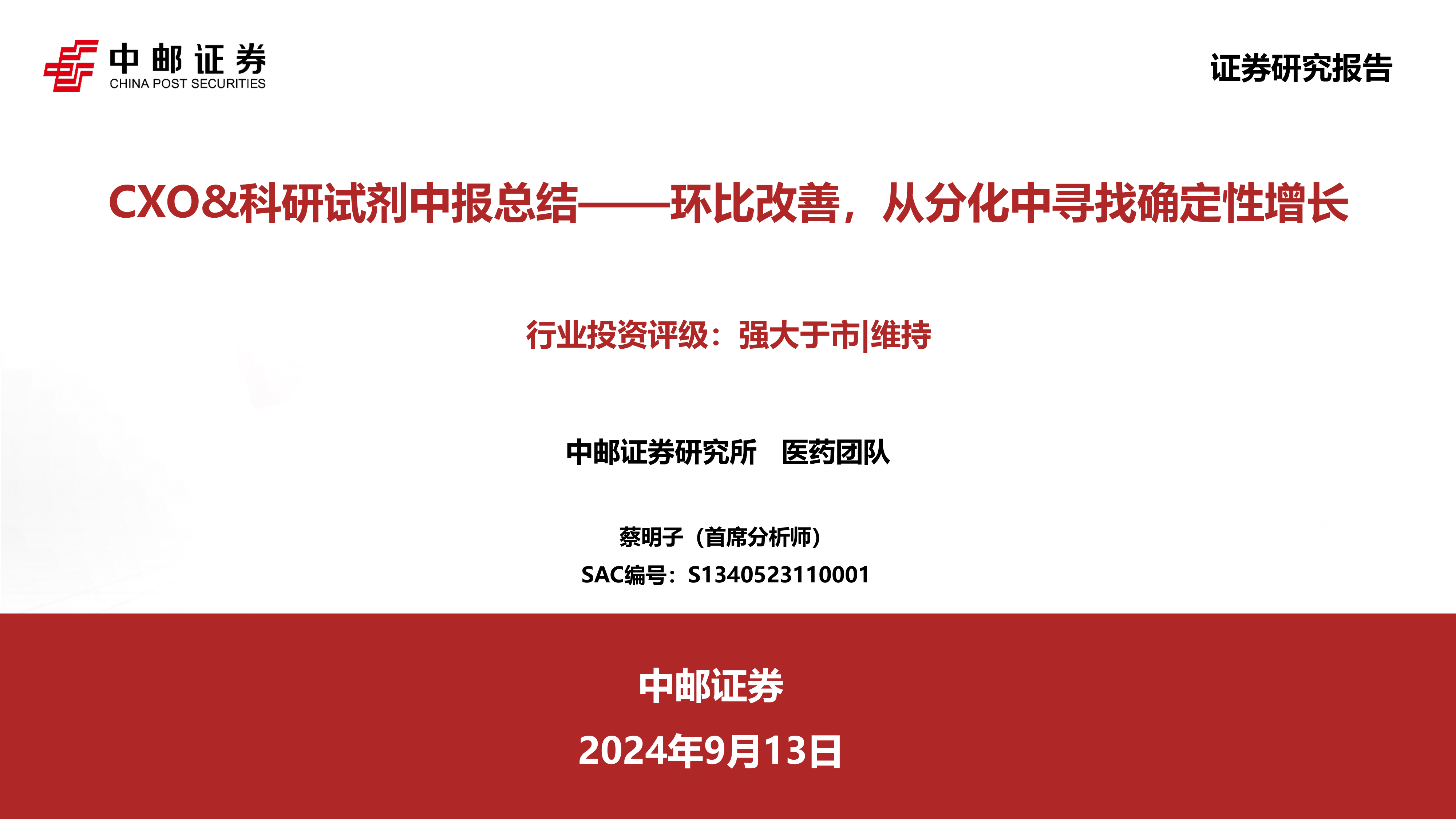 CXO&科研试剂中报总结:环比改善,从分化中寻找确定性增长