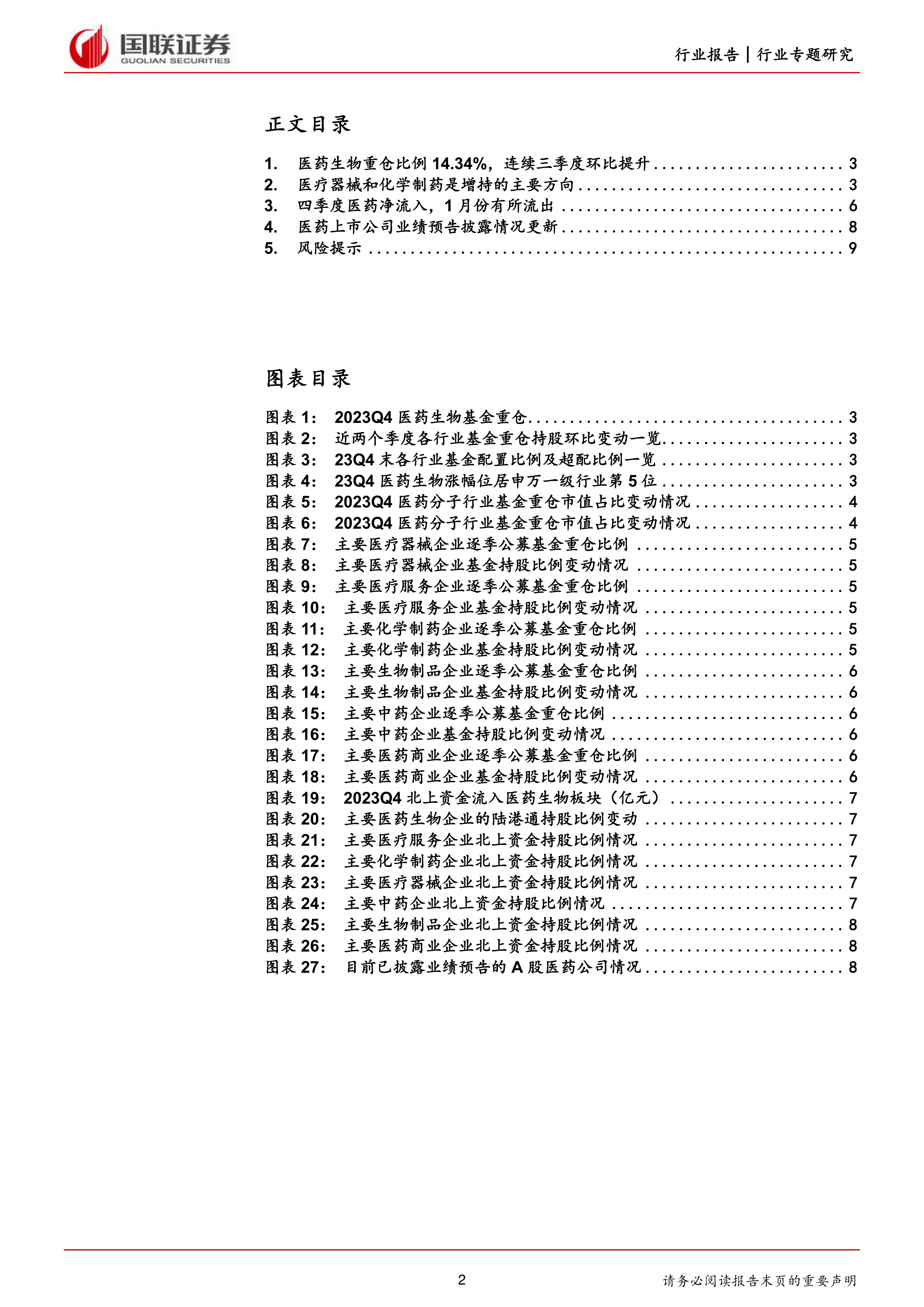 医疗器械和化学制药是增持的主要方向