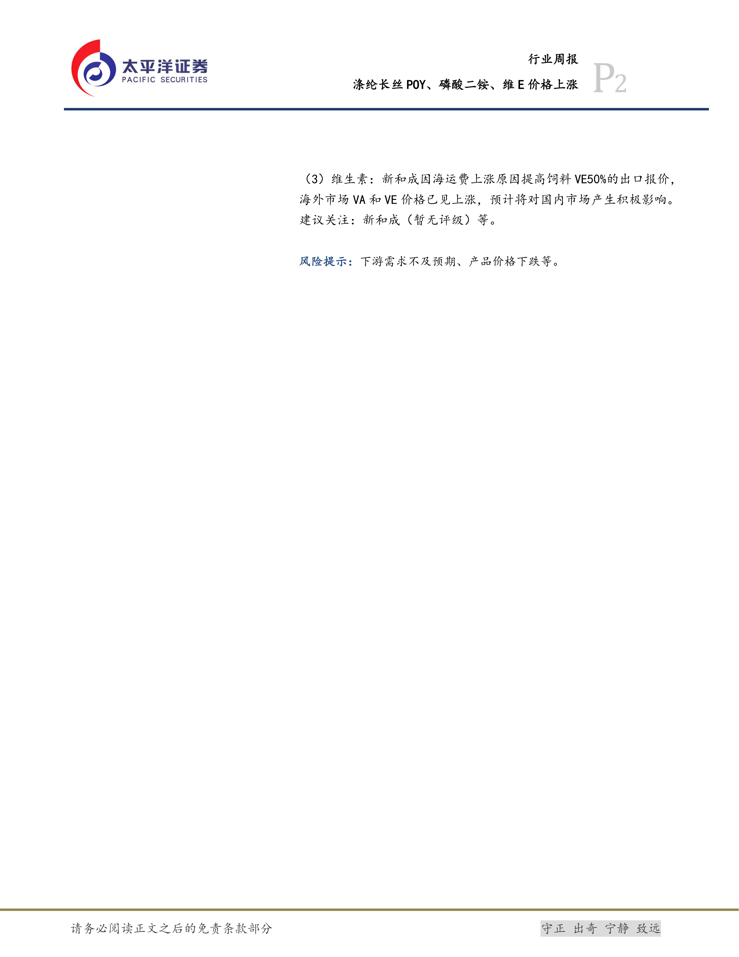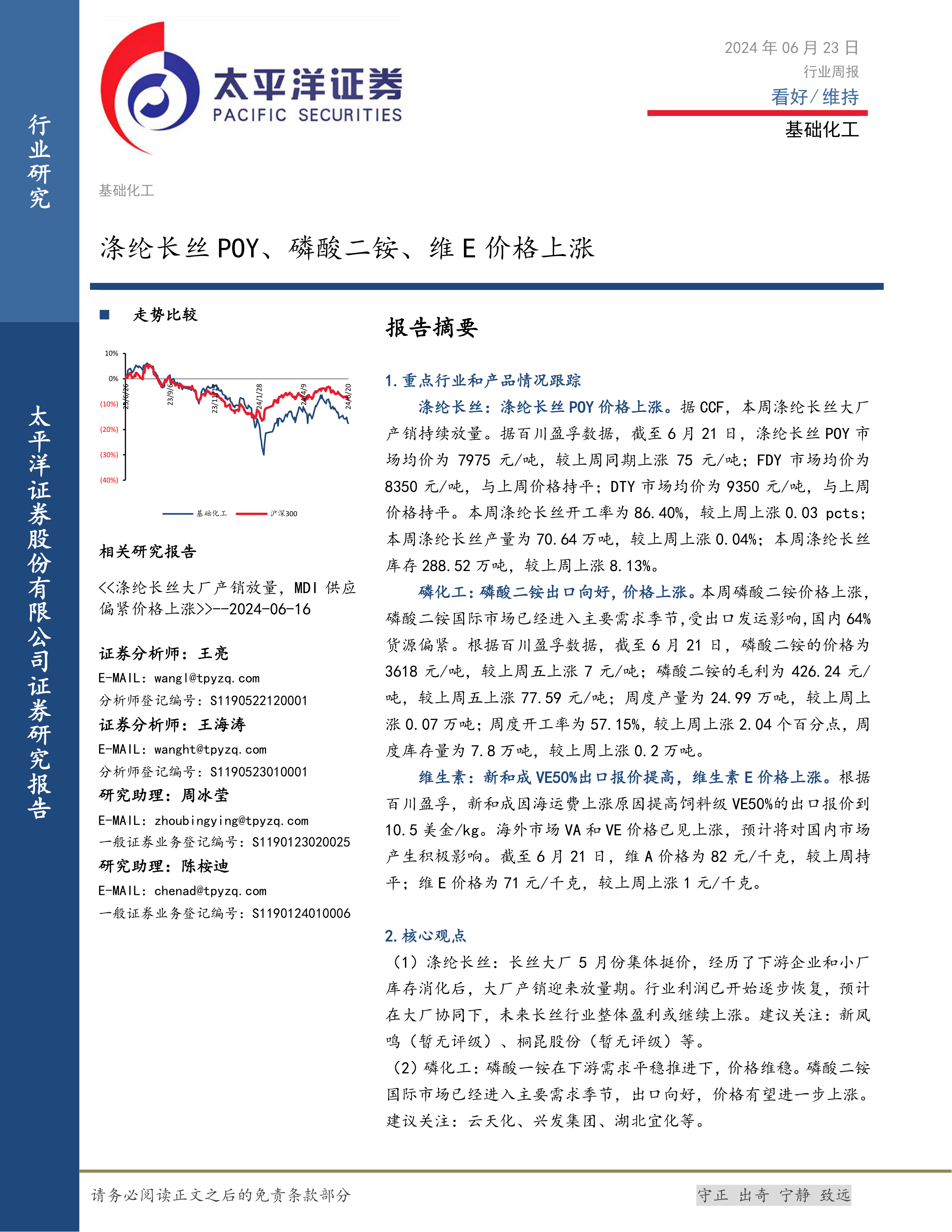 基础化工行业周报:涤纶长丝POY、磷酸二铵、维E价格上涨