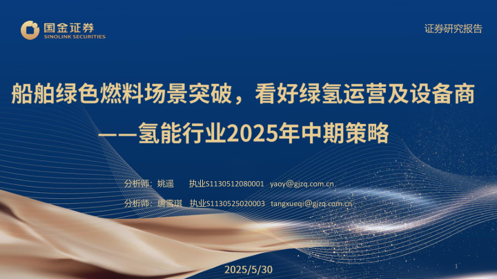 氢能行业2025年中期策略:船舶绿色燃料场景突破,看好绿氢运营及设备商