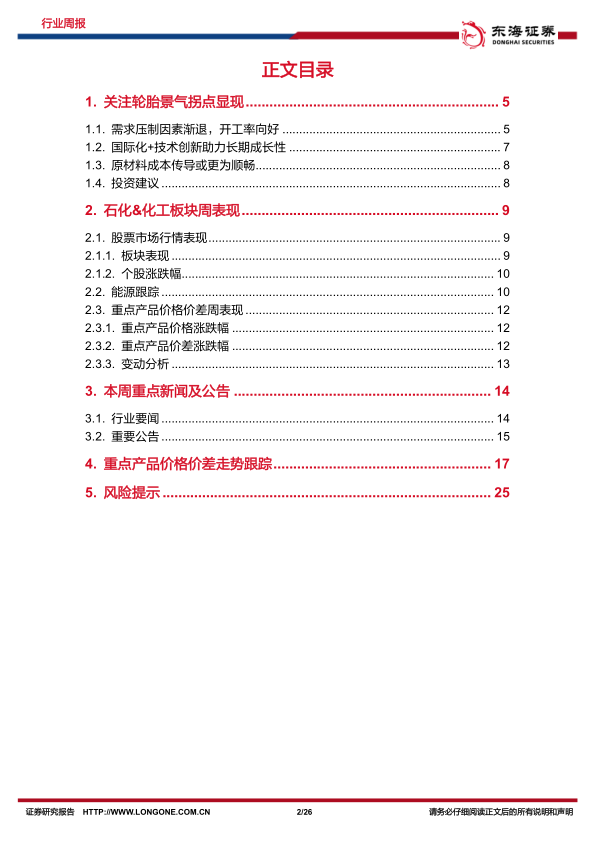 石化化工行业周报:关注轮胎景气拐点显现