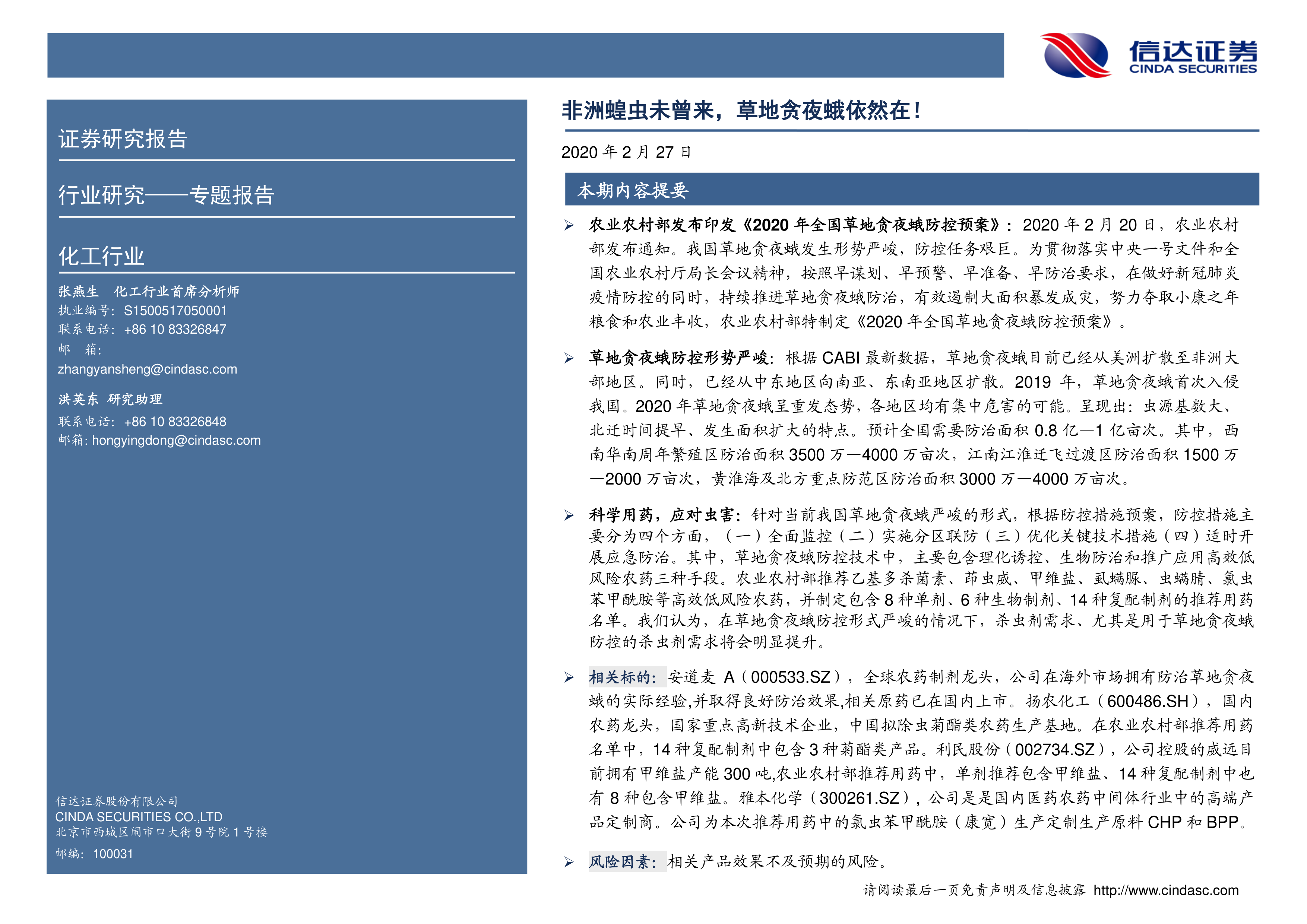化工行业:非洲蝗虫未曾来,草地贪夜蛾依然在!