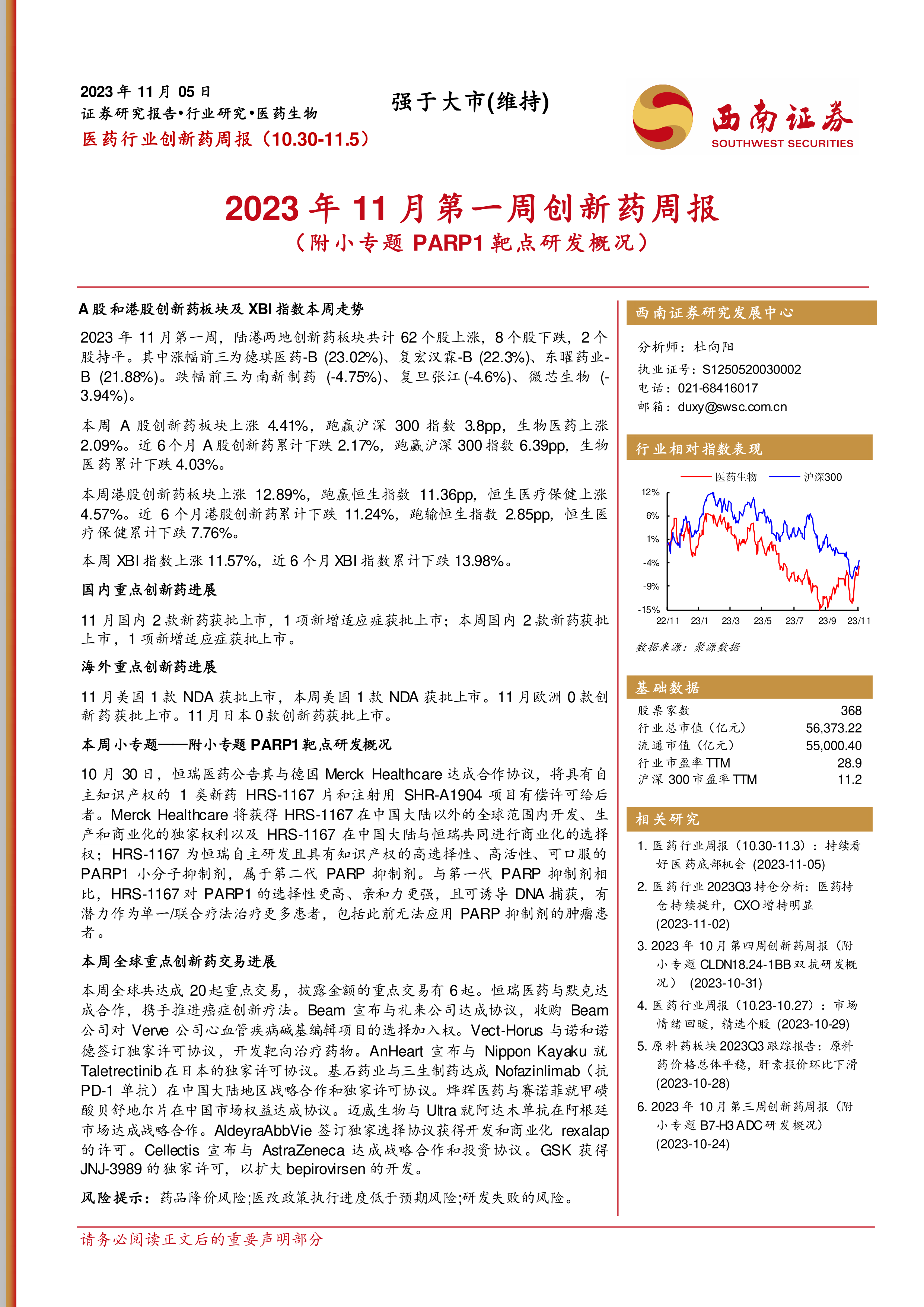 2023年11月第一周创新药周报(附小专题PARP1靶点研发概况)