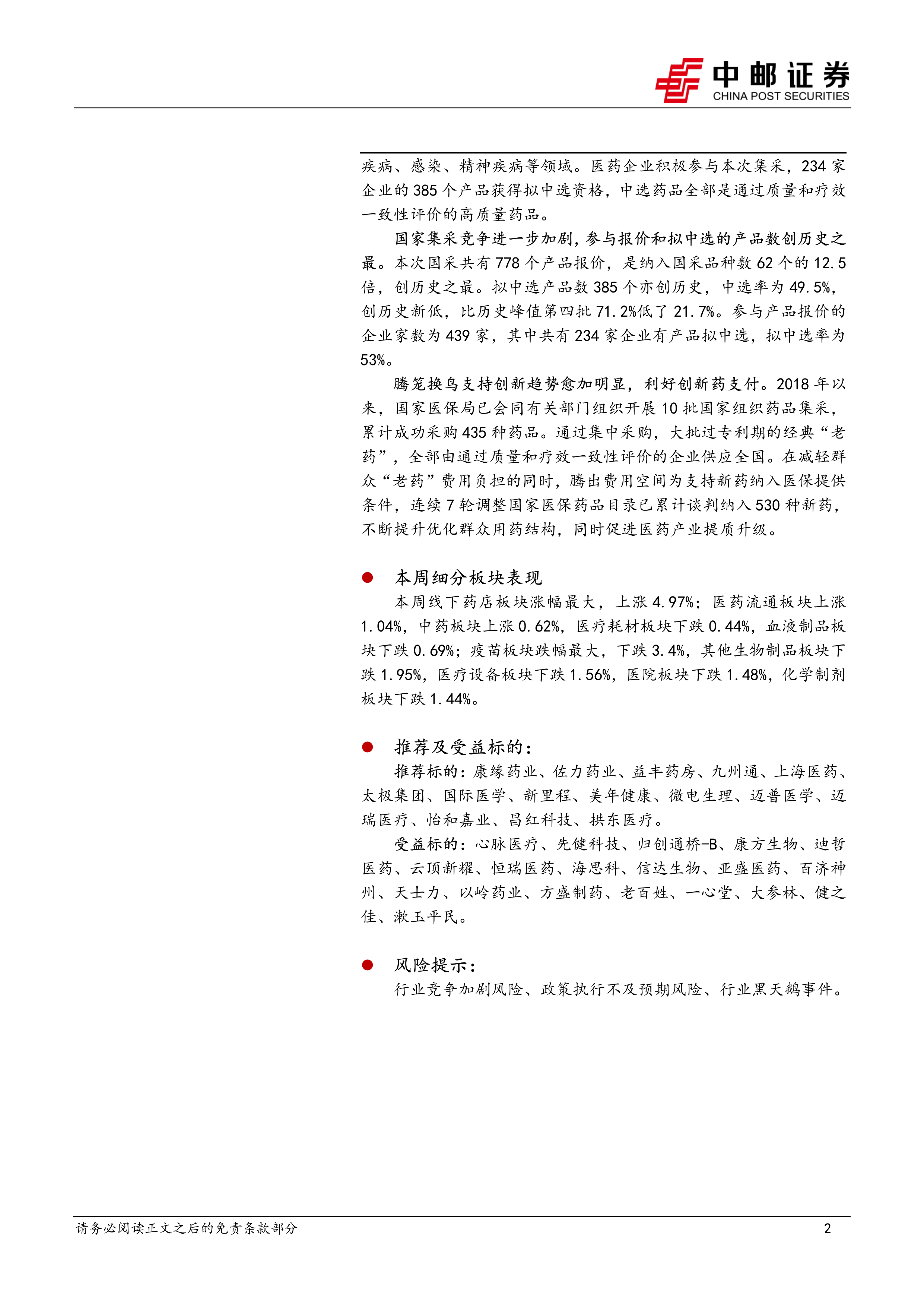 受益标的:心脉医疗、先健科技、归创通桥-B、康方生物、迪哲医药、云顶新耀、恒瑞医药、海思科、信达生物、亚盛医药、百济神州、天士力、以岭药业、方盛制药、老百姓、一心堂、大参林、健之佳、漱玉平民。