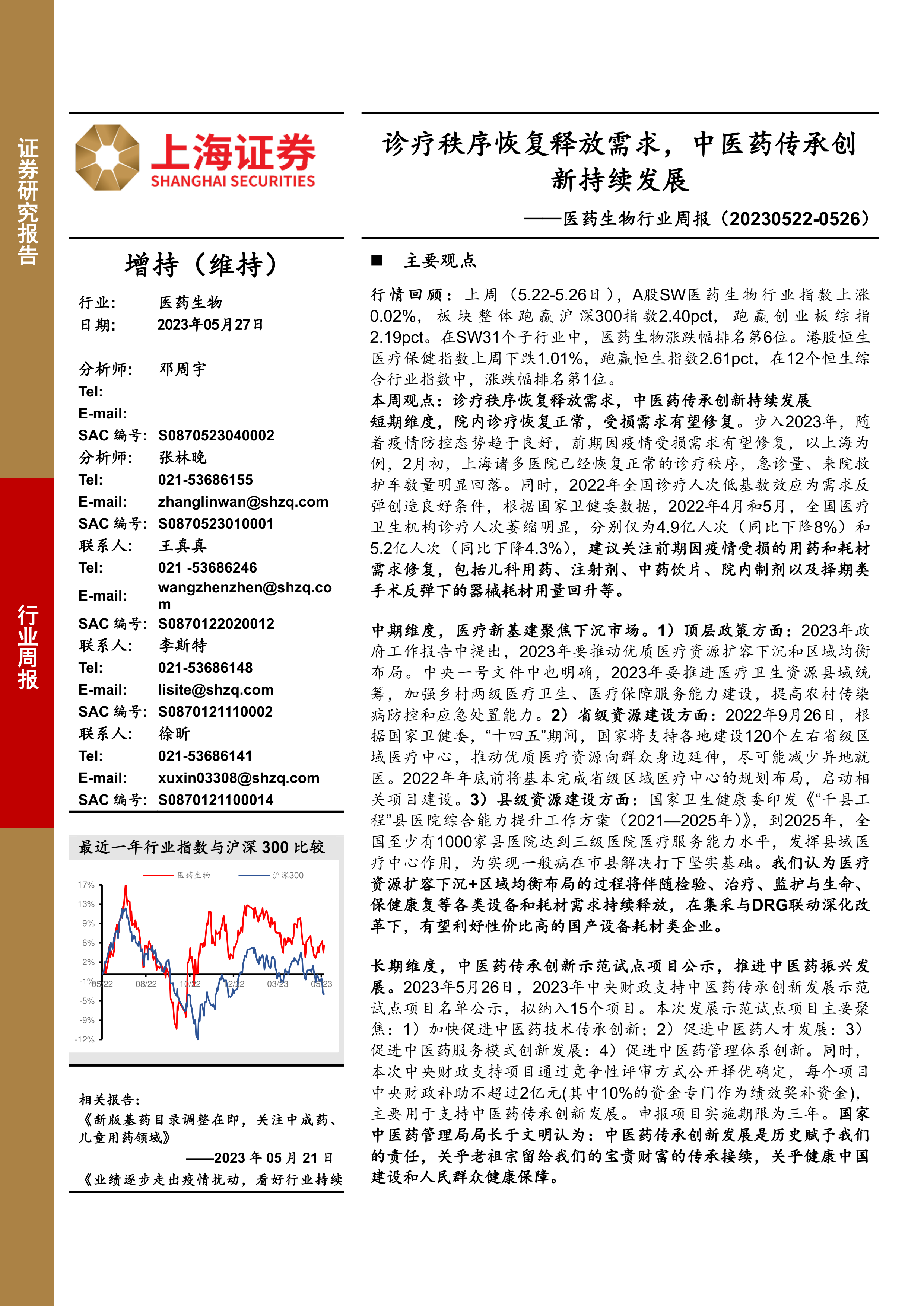 本周观点:诊疗秩序恢复释放需求,中医药传承创新持续发展