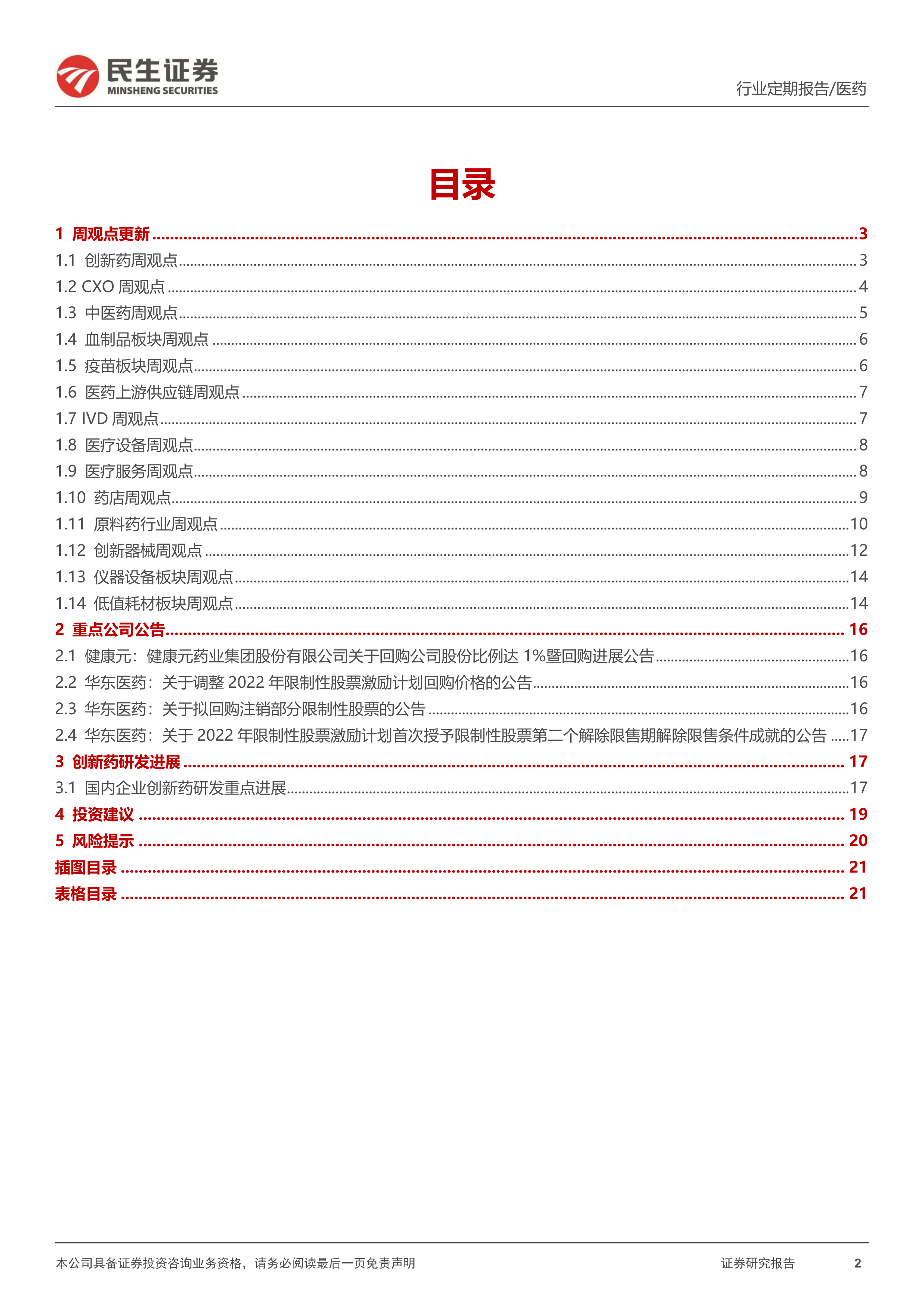 风险提示:集采压力大于预期风险;产品研发进度不及预期风险;竞争加剧风险;政策监管环境变化风险;药物研发服务市场需求下降的风险。