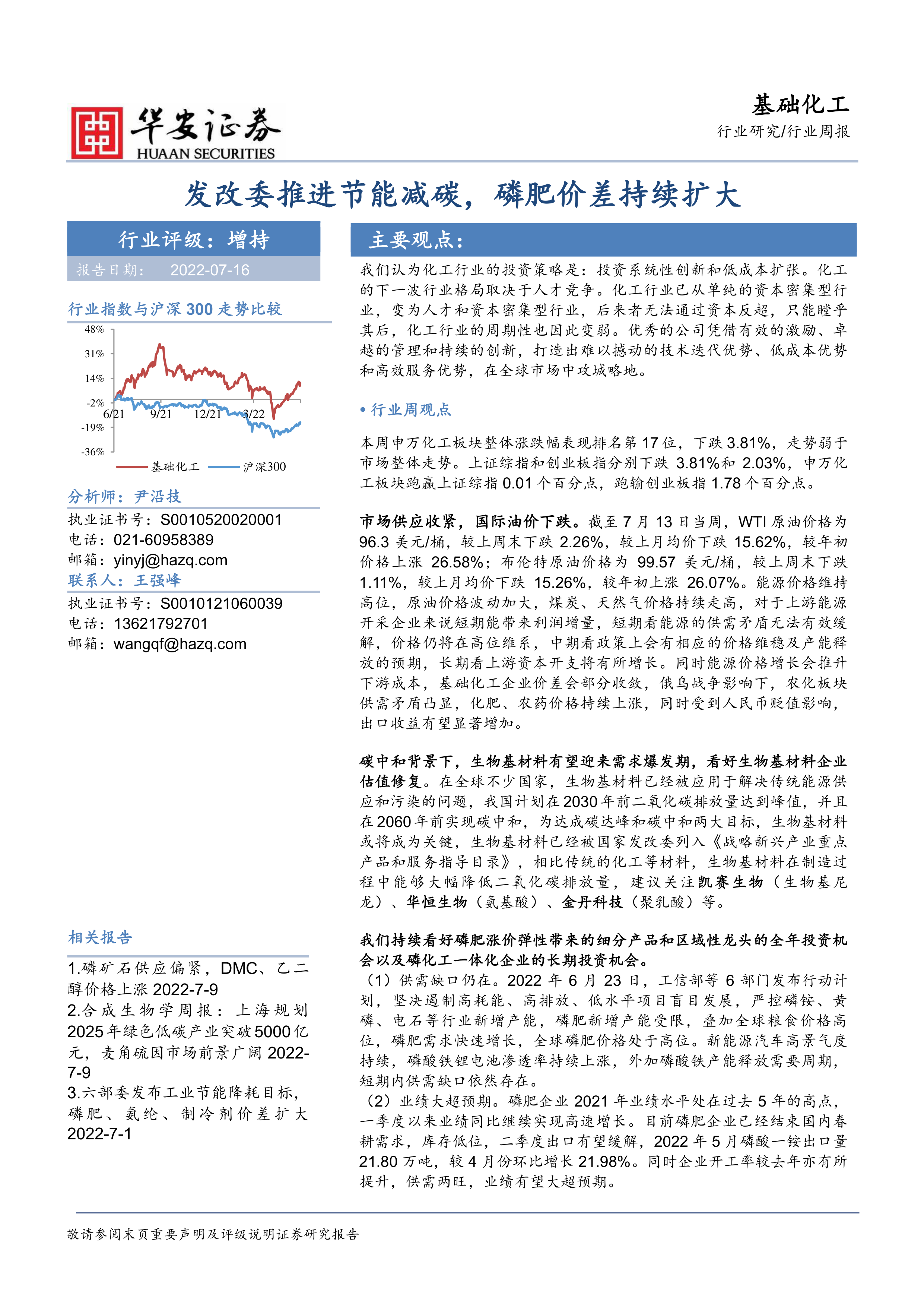 基础化工行业周报:发改委推进节能减碳,磷肥价差持续扩大