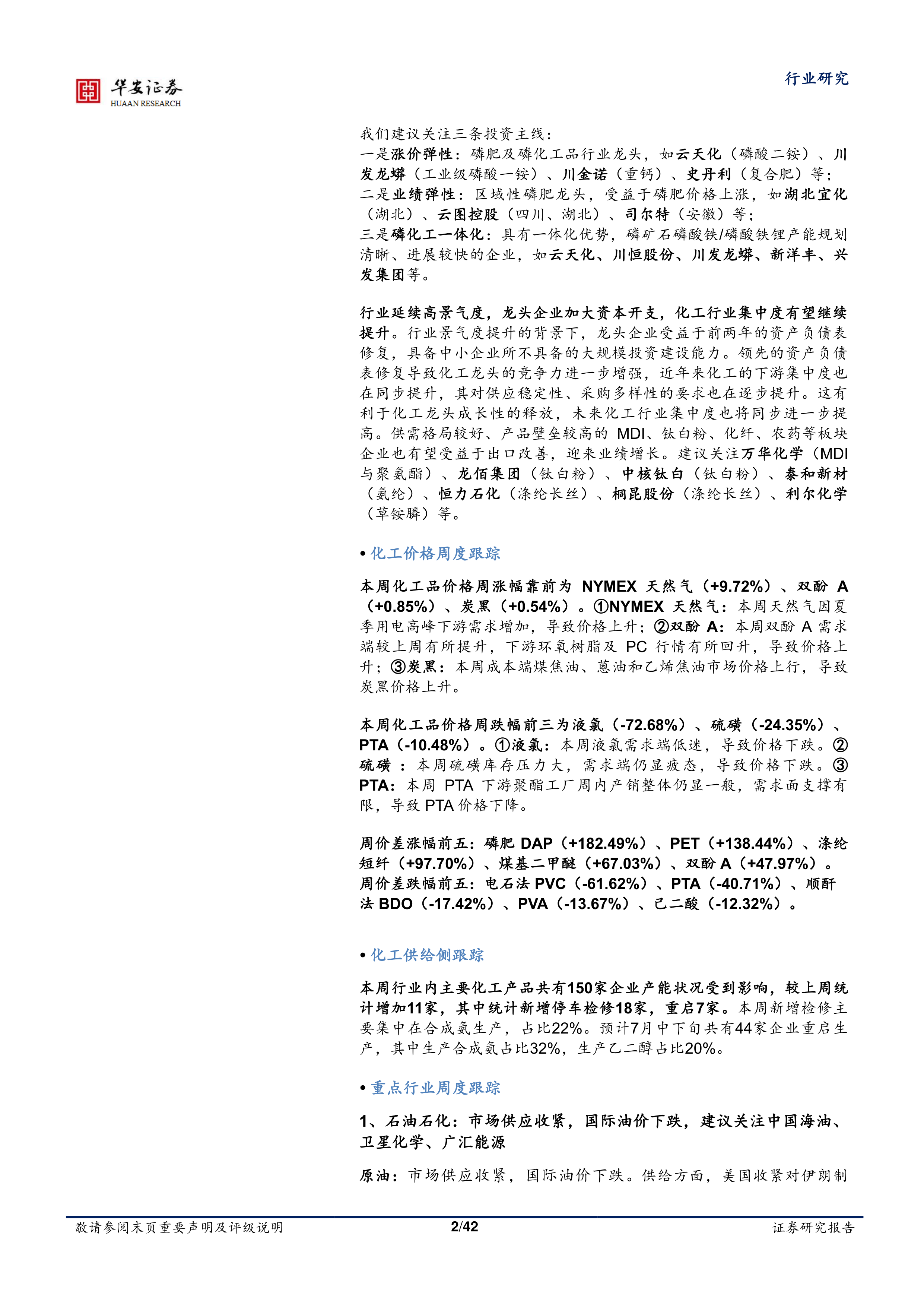 我们持续看好磷肥涨价弹性带来的细分产品和区域性龙头的全年投资机会以及磷化工一体化企业的长期投资机会。