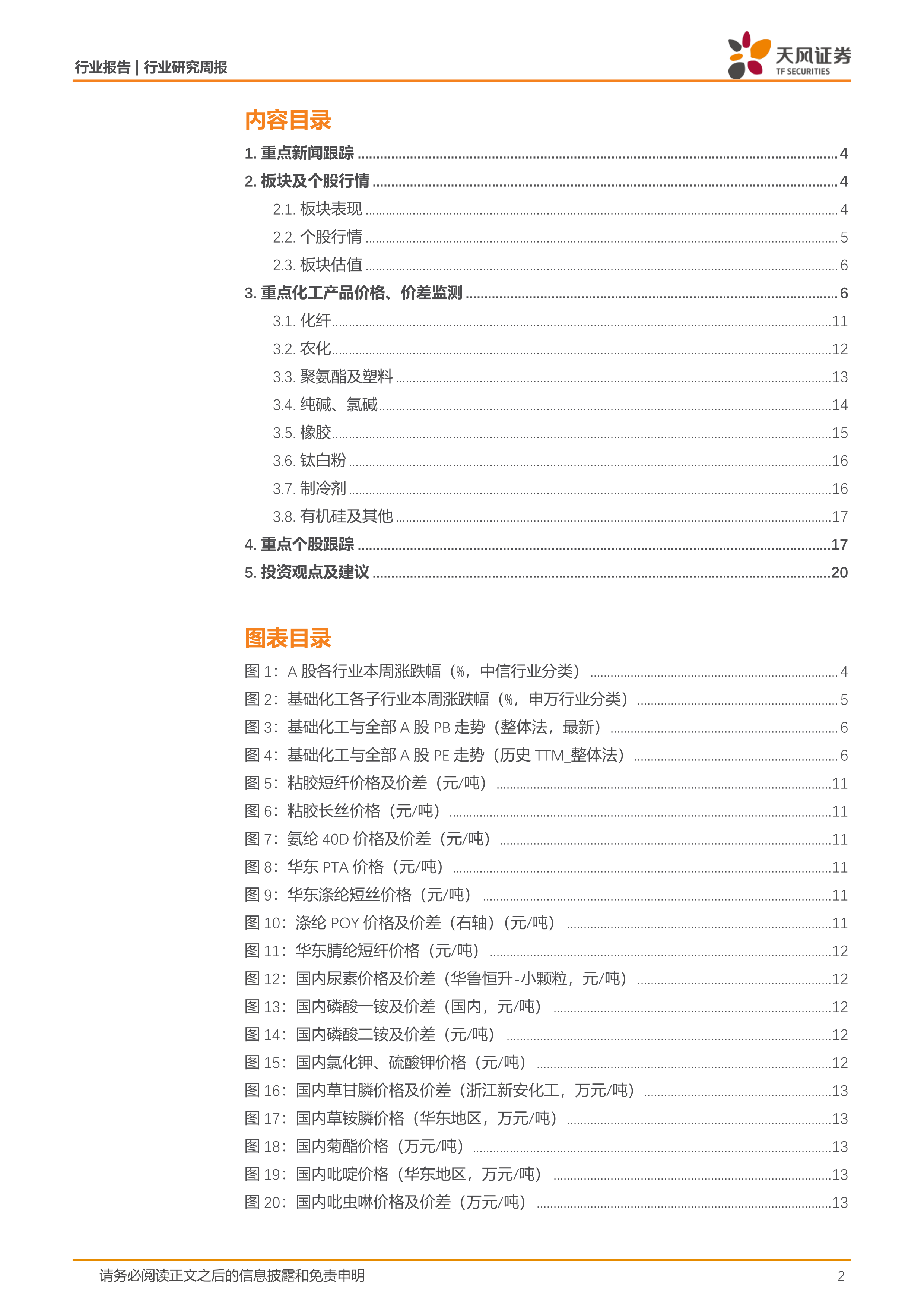 重点关注子行业:本周VE/TDI价格分别上涨2.3%/0.4%;VA/粘胶长丝/DMF/醋酸/有机硅/橡胶/乙烯法PVC/尿素/聚合MDI/粘胶短纤/乙二醇/烧碱/电石法PVC价格分别下跌19.4%/5.6%/3.4%/2.5%/1.5%/1.2%/0.6%/0.6%/0.5%/0.4%/0.3%/0.1%/0.1%;轻质纯碱/固体蛋氨酸/液体蛋氨酸/钛白粉/氨纶/重质纯碱/纯MDI价格维持不变。