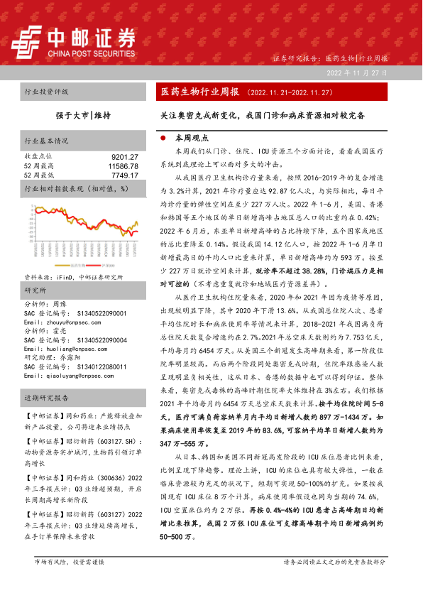 医药生物行业周报:关注奥密克戎新变化,我国门诊和病床资源相对较完备