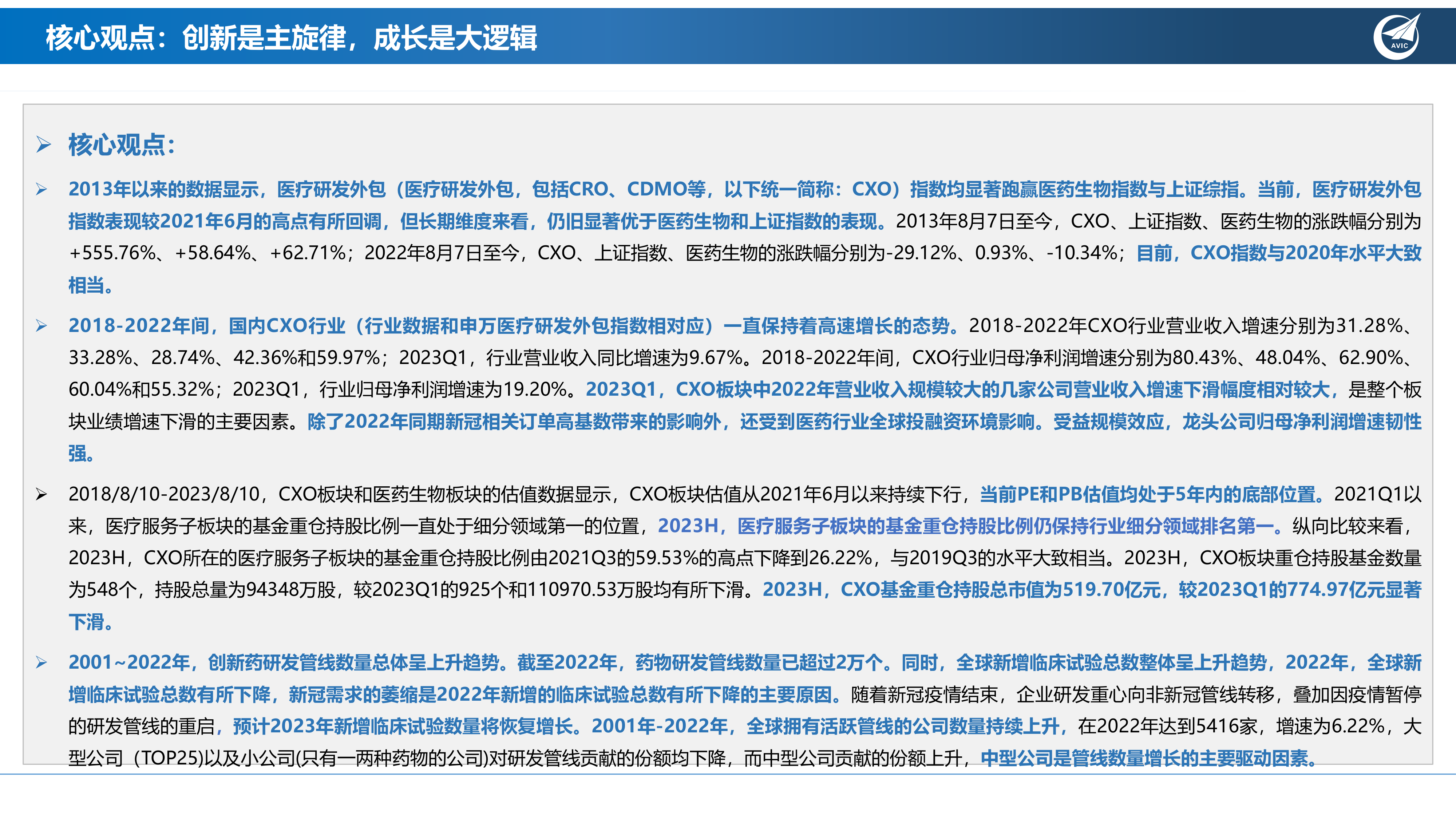本报告主要从以下几个方面对CXO行业进行了分析: