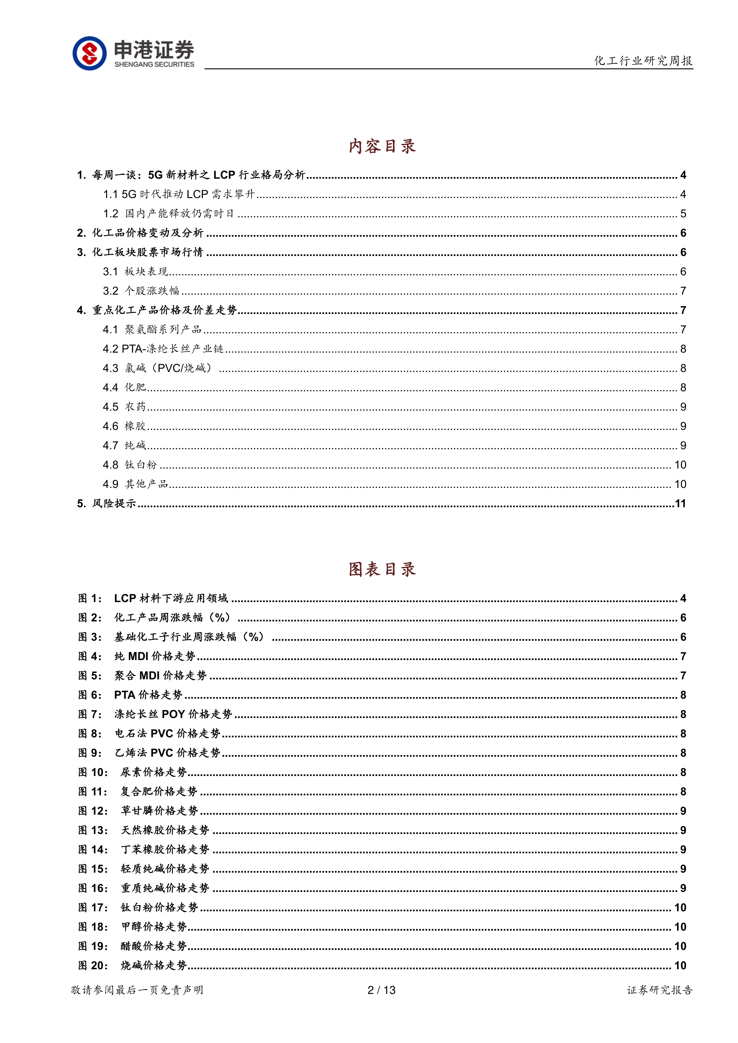 本报告深入分析了5G背景下LCP新材料的供需格局,指出5G技术的快速发展推动了LCP材料需求的快速增长,全球市场呈现供不应求的局面。虽然国内LCP产能占比相对较低,但增长潜力巨大,未来几年供需格局仍将向好。国内LCP企业面临机遇与挑战并存的局面,建议关注具备自主技术和先进工艺的国内龙头企业。报告还对本周化工板块的市场行情和重点化工产品价格走势进行了分析,为投资者提供参考。 需要注意的是,报告中提到的数据和预测均来源于公开资料,其准确性和完整性无法完全保证,投资者应谨慎参考。