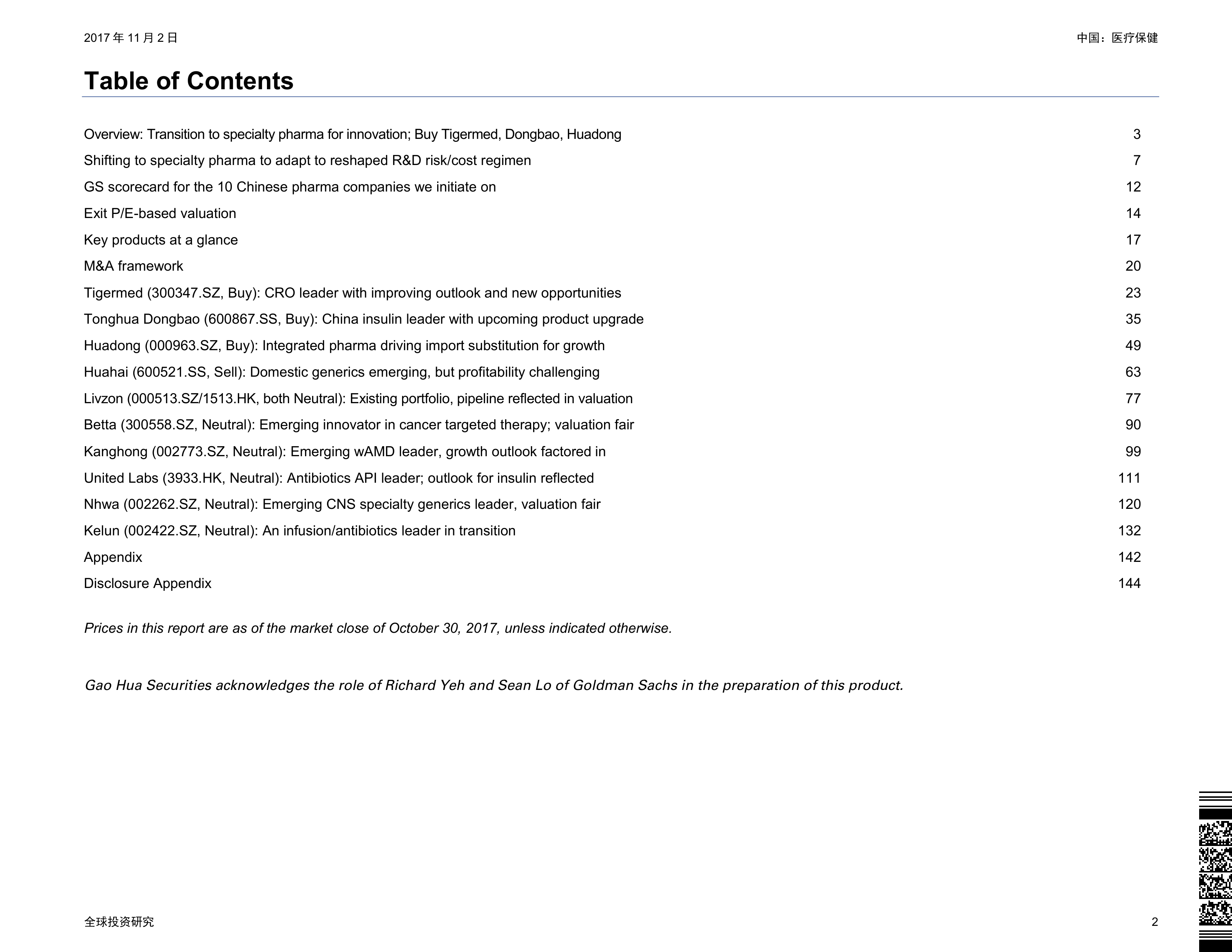 本报告首次覆盖10家中国医药企业和一家CRO公司(合同研究组织),基于高盛专有行业评分卡和退出市盈率估值法,对中国医药行业进行分析,并给出投资建议。报告的核心观点包括: