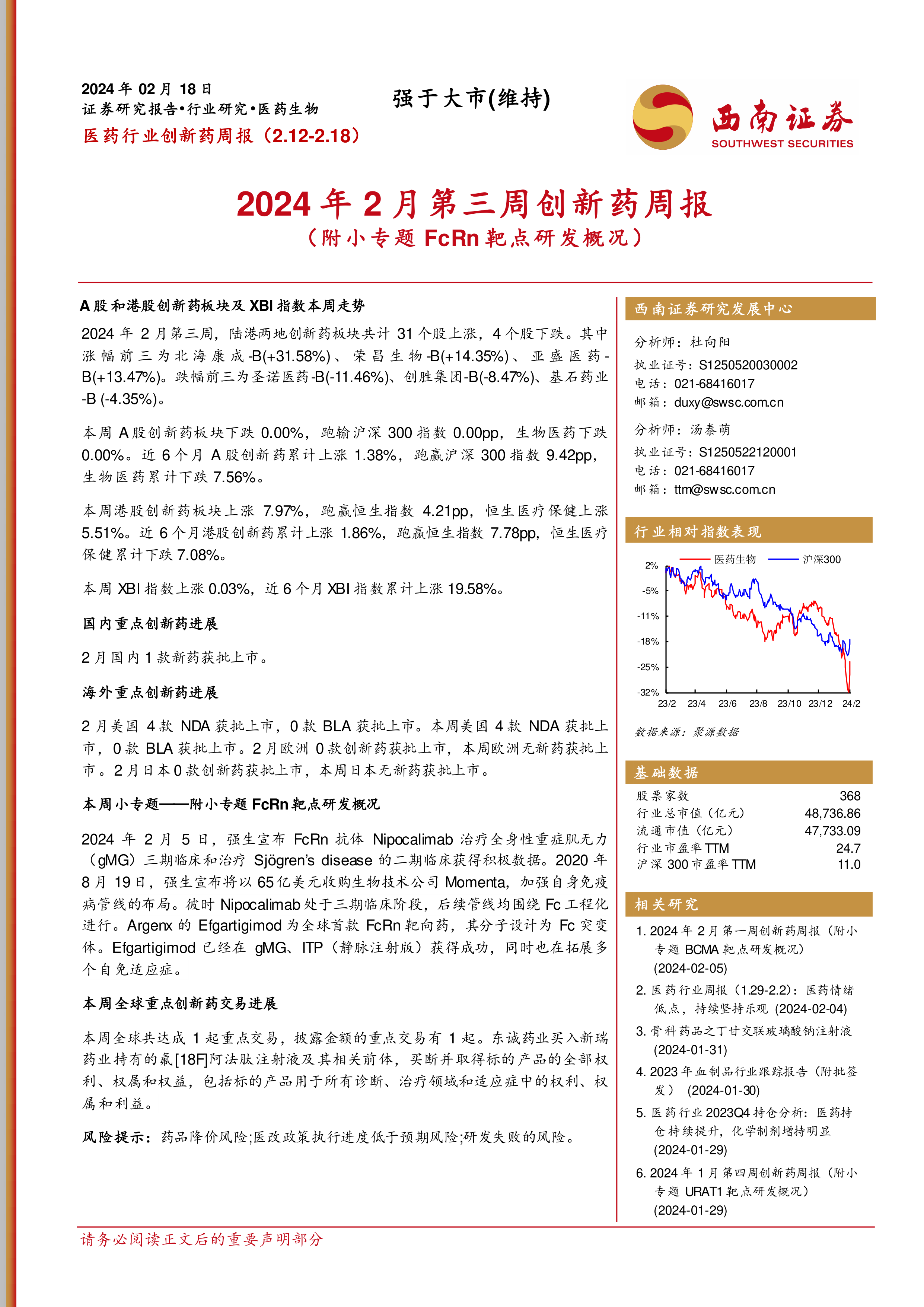 2024年2月第三周创新药周报(附小专题FcRn靶点研发概况)