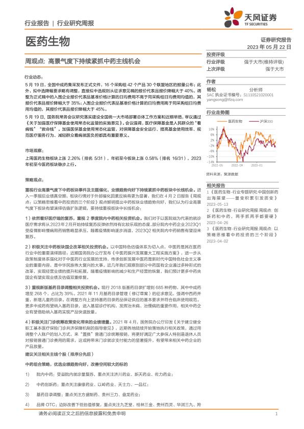 重视行业高景气度下中药板块事件及主题催化,业绩趋势向好下持续紧抓中药板块中长线机会。进入一季报后业绩真空期,板块行情对于外部催化因素反映将更为显著,我们在4月2日报告《周观点:以策略思维看中药投资的三个阶段》观点鲜明提出中药板块业绩趋势向好,我们认为行业高景气度下板块有望演绎估值扩张逻辑,要持续重视板块中长线机会: