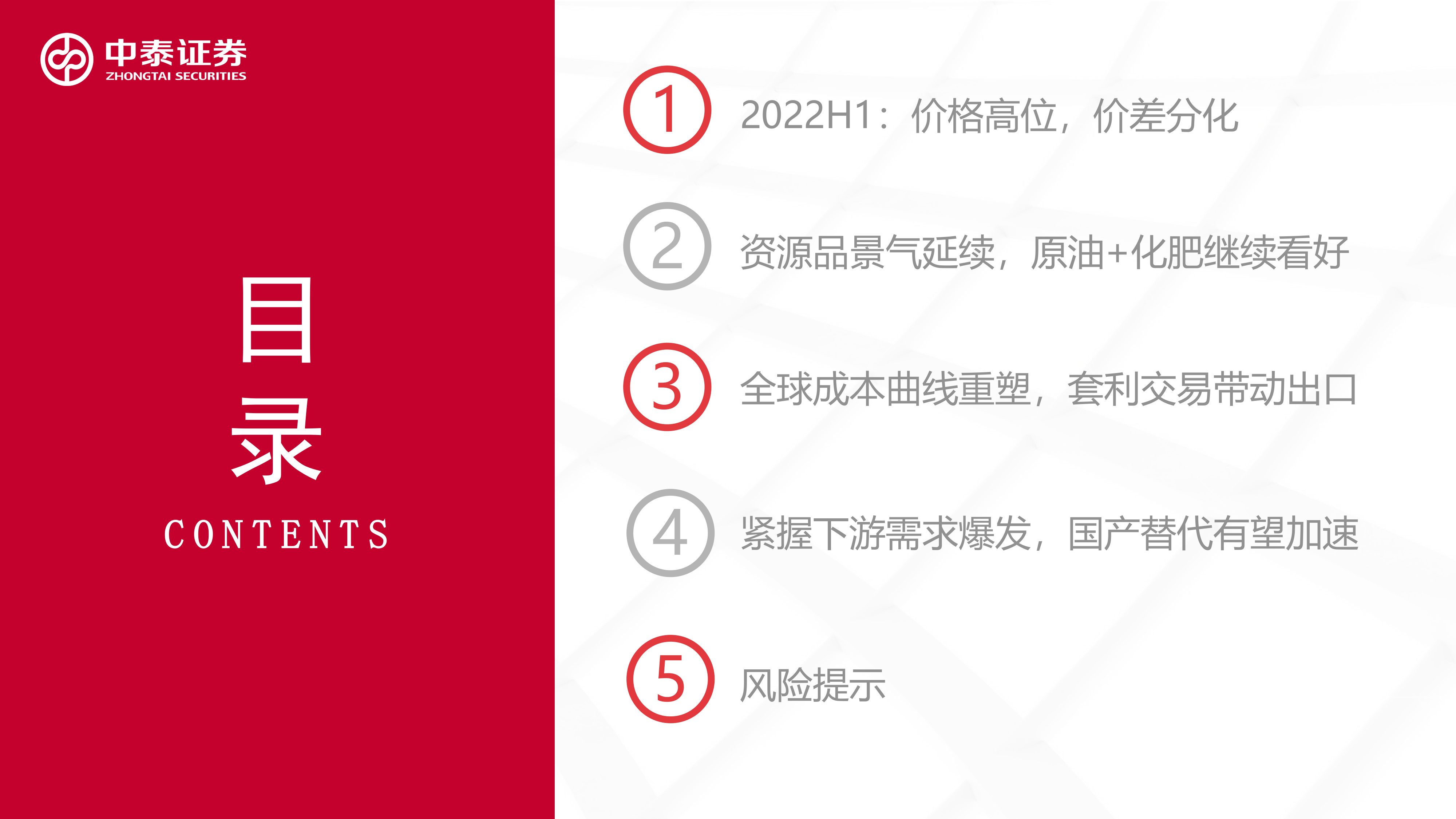 本报告的核心观点是:逆全球化浪潮加剧了全球资源品争夺,重塑了全球化工成本曲线,为中国化工行业带来了新的发展机遇。报告建议投资者关注资源品景气延续带来的投资机会(原油、化肥等),以及中国化工企业在中游加工和下游新材料领域的优势,并重点关注部分具备国产替代优势和下游需求爆发的细分领域。