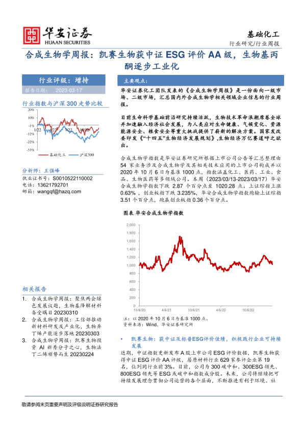 合成生物学周报:凯赛生物获中证ESG评价AA级,生物基丙酮逐步工业化
