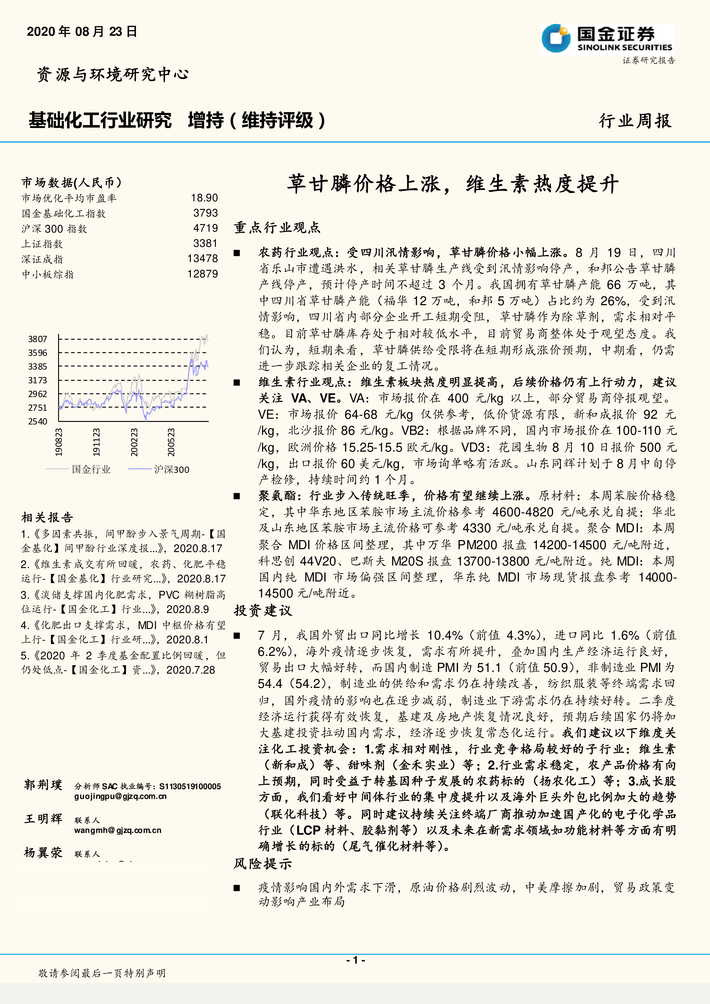 基础化工行业研究:草甘膦价格上涨,维生素热度提升
