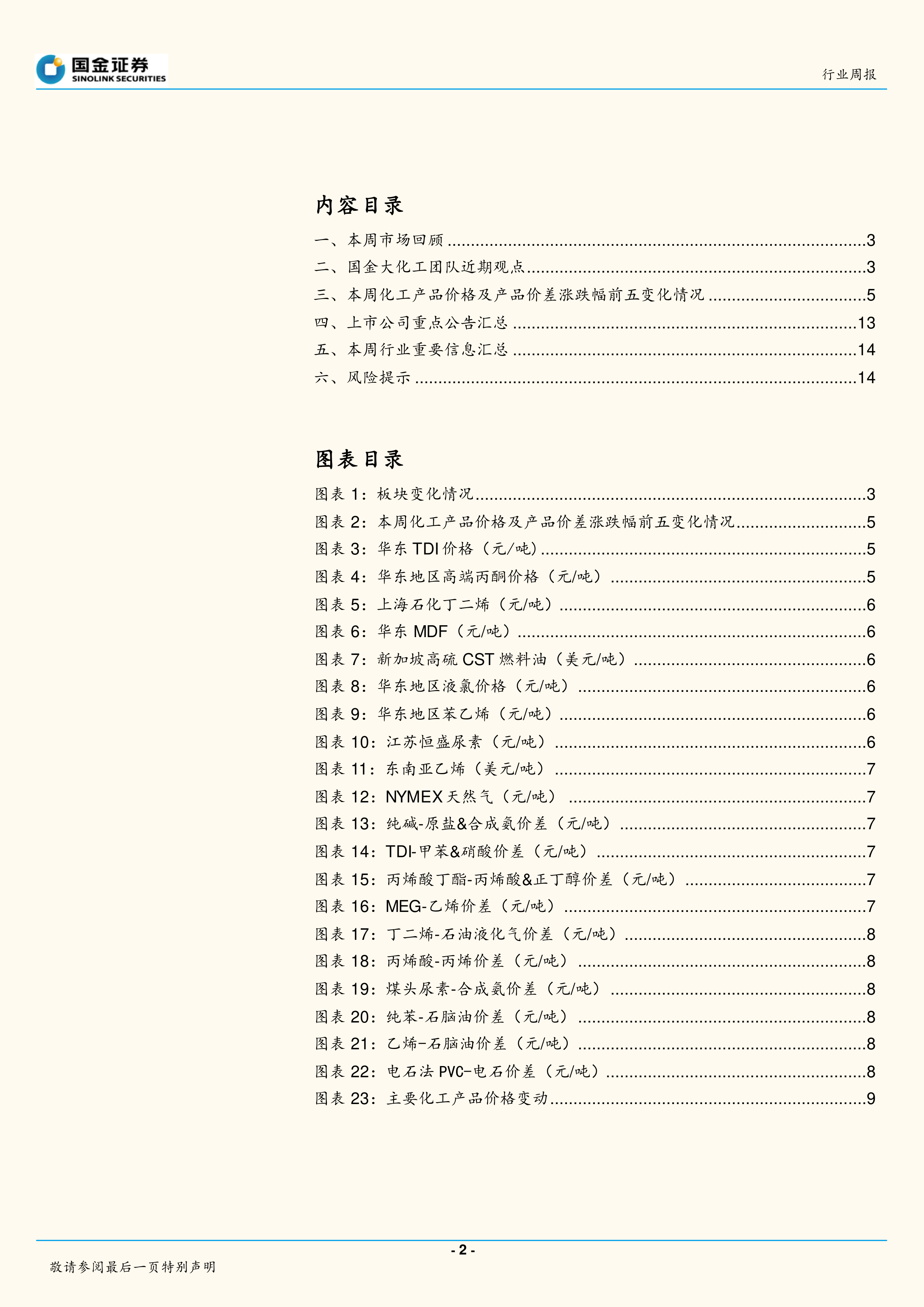 本报告根据国金证券基础化工行业周报的内容,对市场进行了分析,主要内容包括: