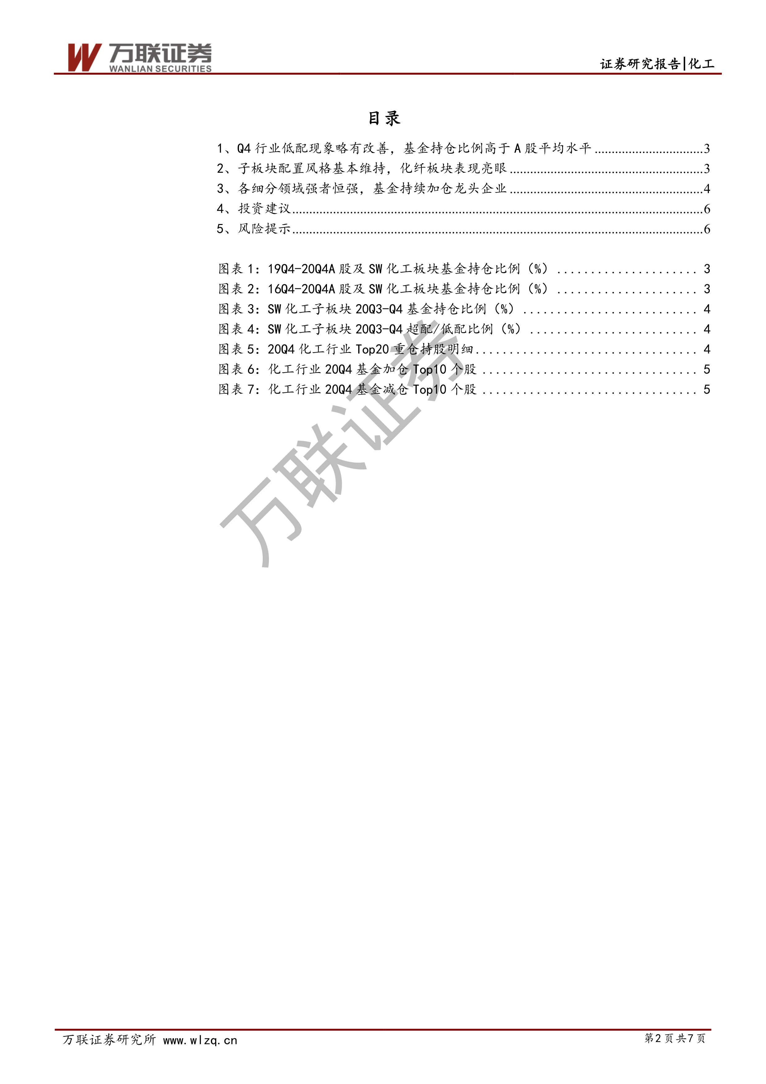 本报告基于2020年第四季度的数据,对化工行业基金持仓情况进行了深入分析。结果表明,化工行业整体表现优于大市,基金持仓水平明显改善,这与行业景气度的回升密切相关。基金配置风格相对稳定,集中于各细分领域的龙头企业。报告提出的投资建议和风险提示,为投资者提供了重要的参考信息。 未来化工行业的发展仍需关注宏观经济环境、政策变化以及国际市场波动等因素的影响。 持续关注行业龙头企业,并密切跟踪行业景气度变化,将有助于投资者做出更明智的投资决策。