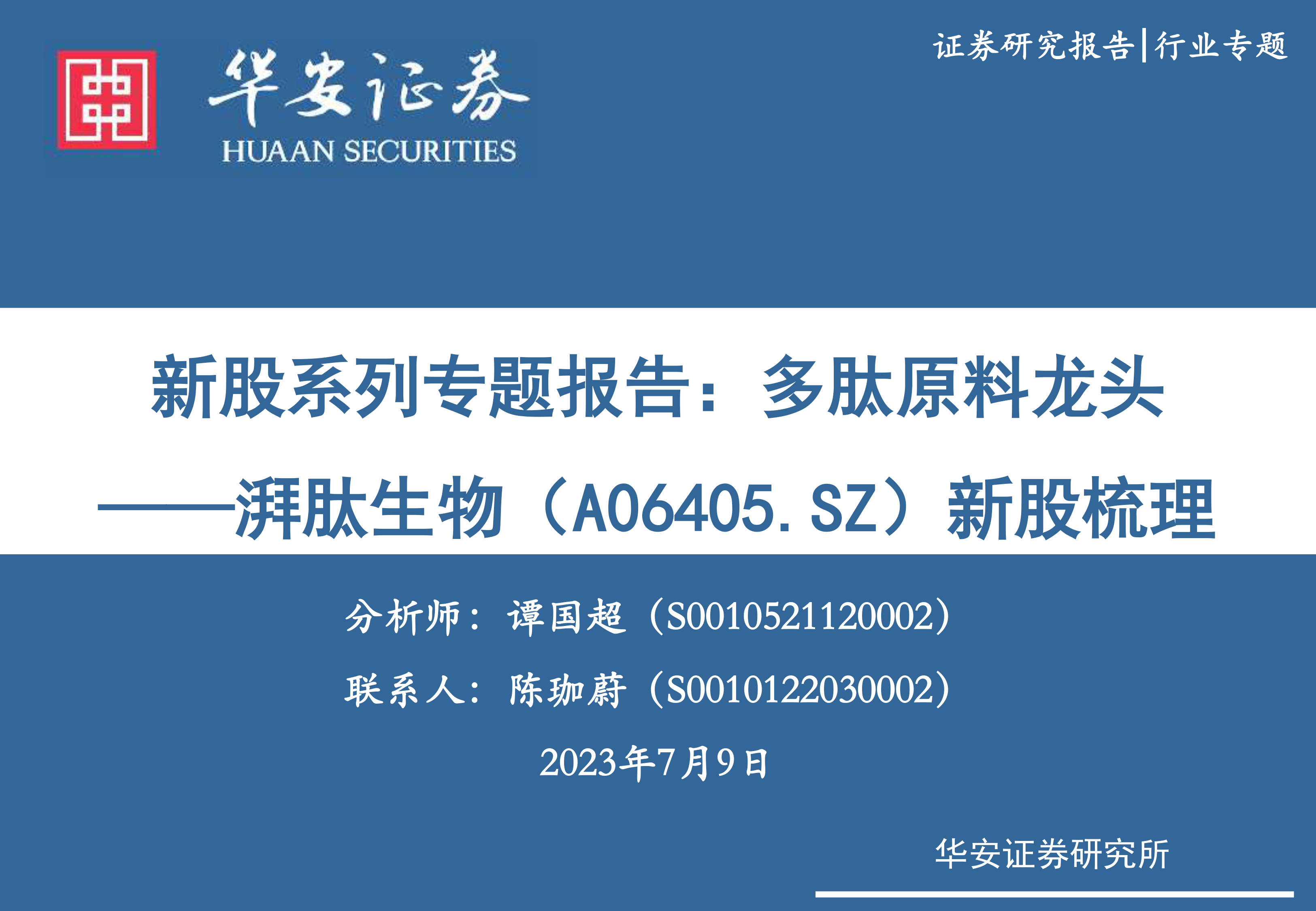 医药生物行业新股系列专题报告:多肽原料龙头