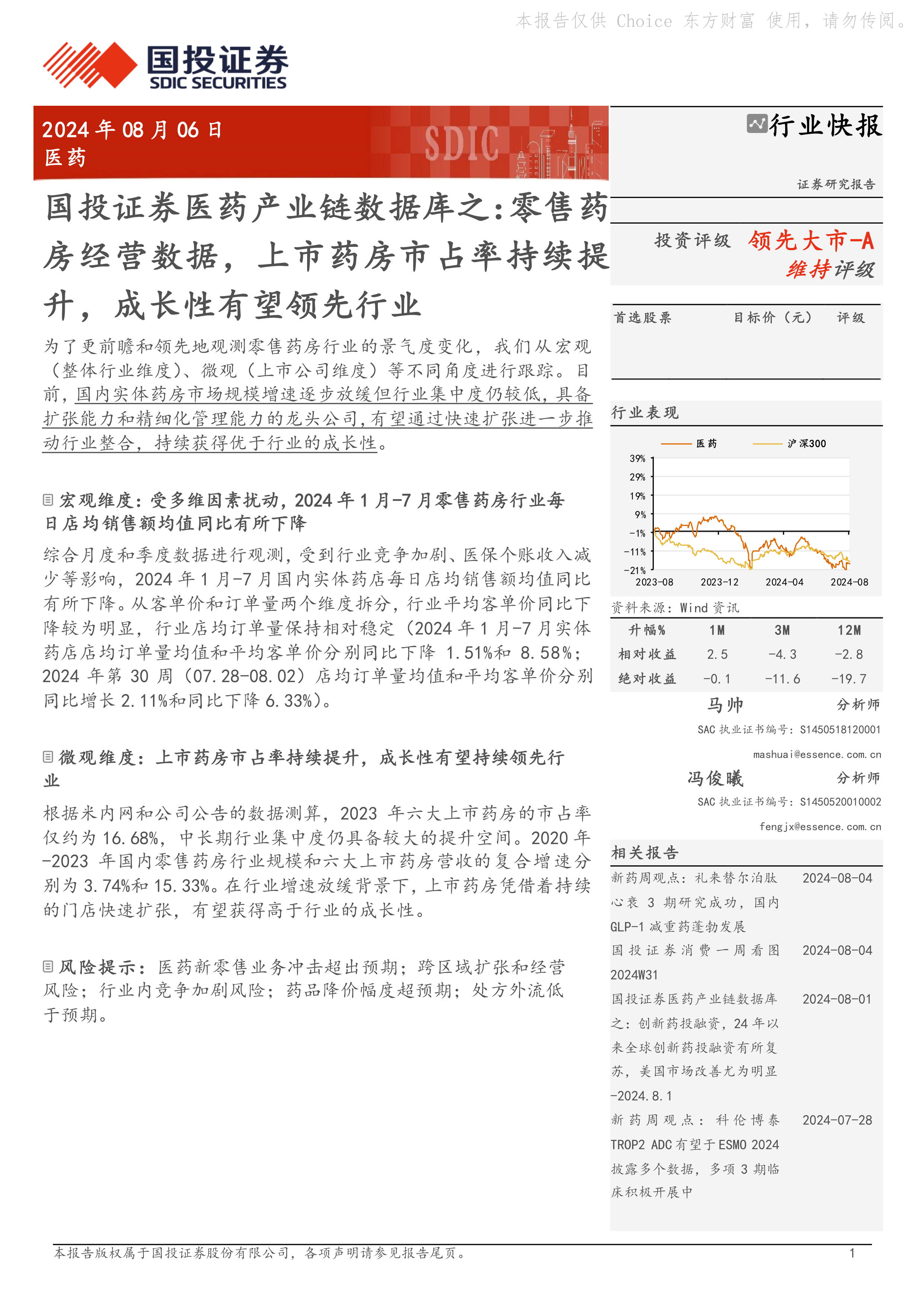 报告列举了零售药房行业面临的几大风险: