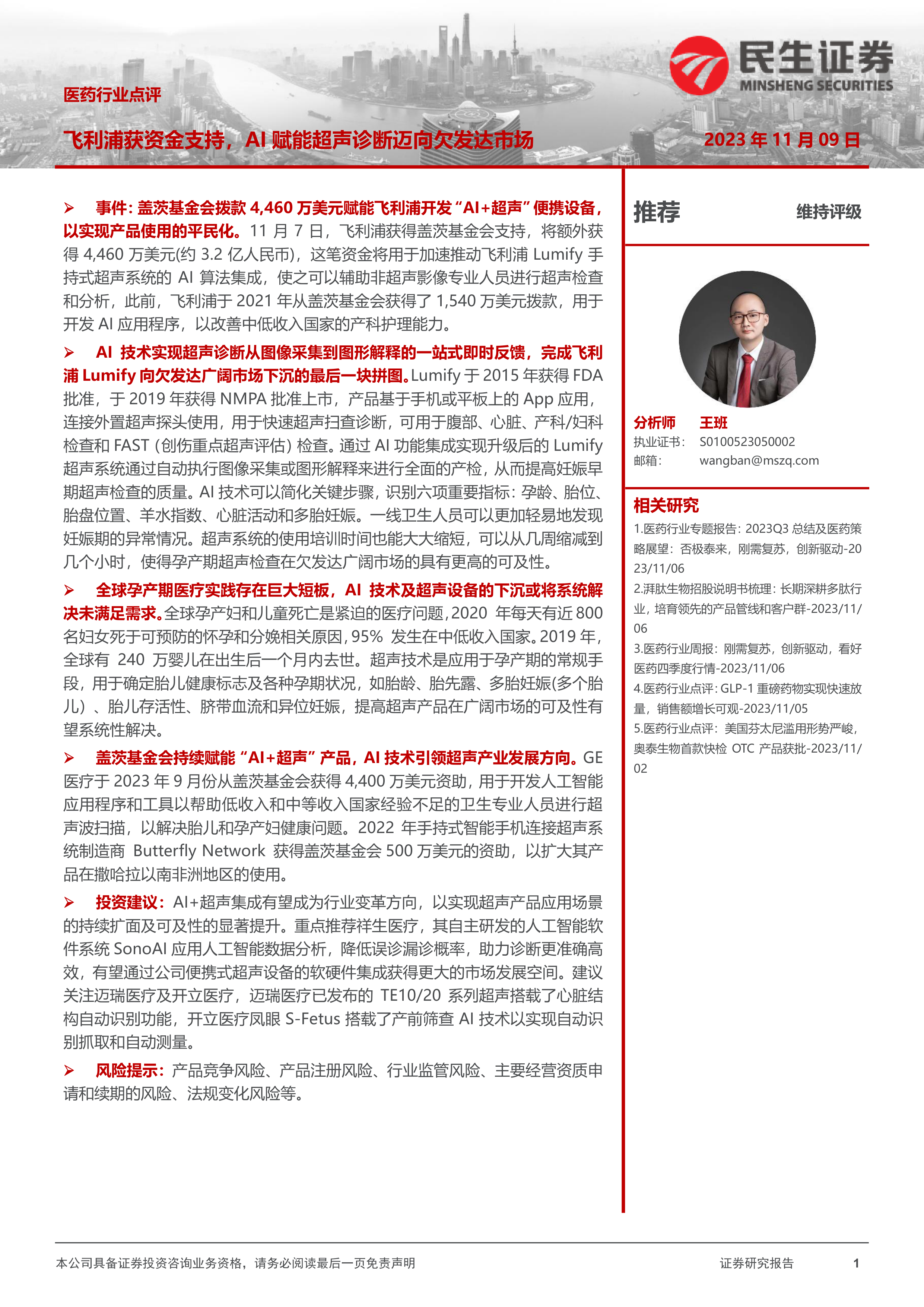 本报告主要围绕飞利浦获得盖茨基金会资助,开发AI赋能的便携式超声系统展开分析,并对相关行业发展趋势和投资机会进行了探讨。