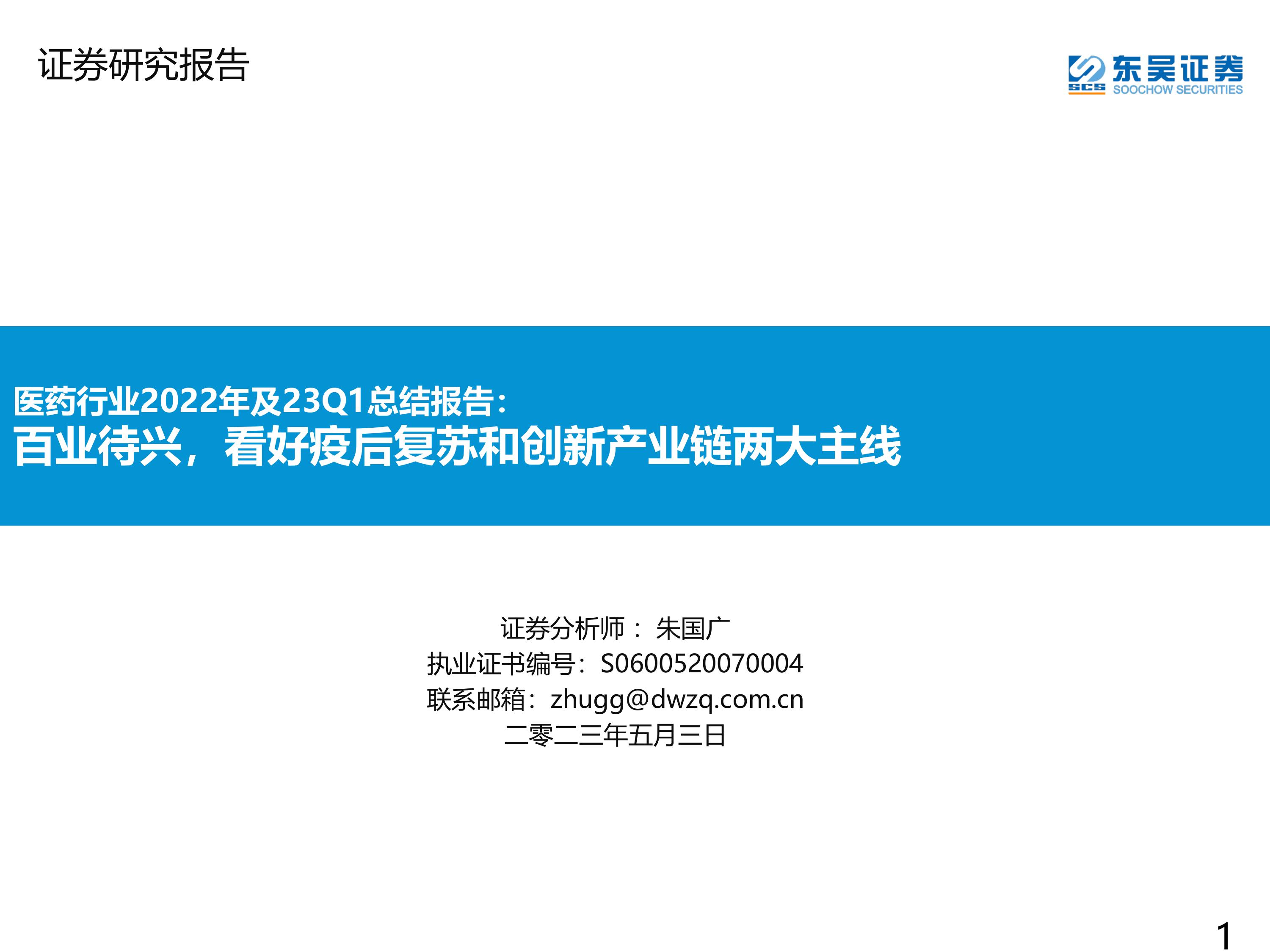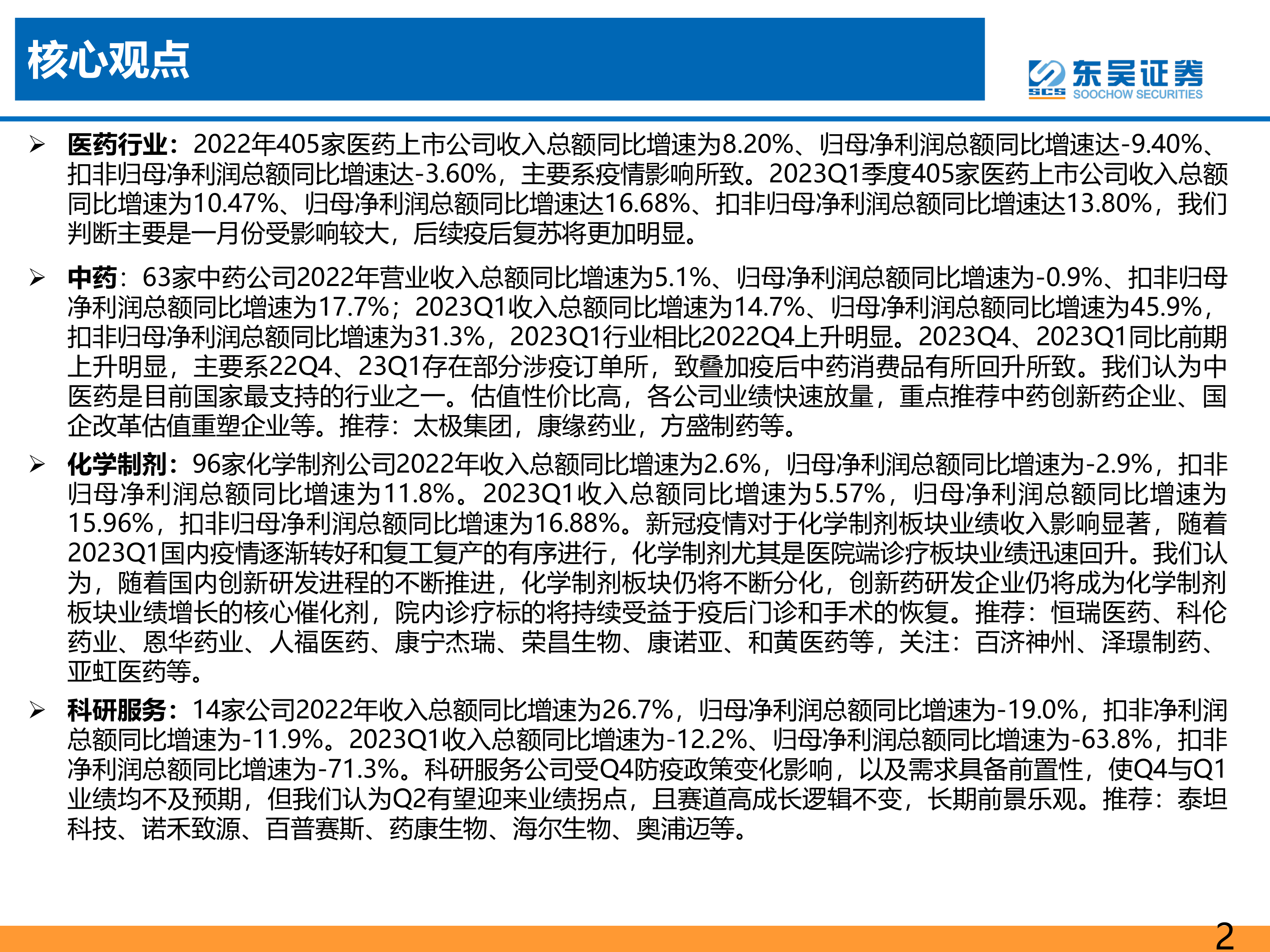 医药行业2022年及23Q1总结报告:百业待兴,看好疫后复苏和创新产业链两大主线