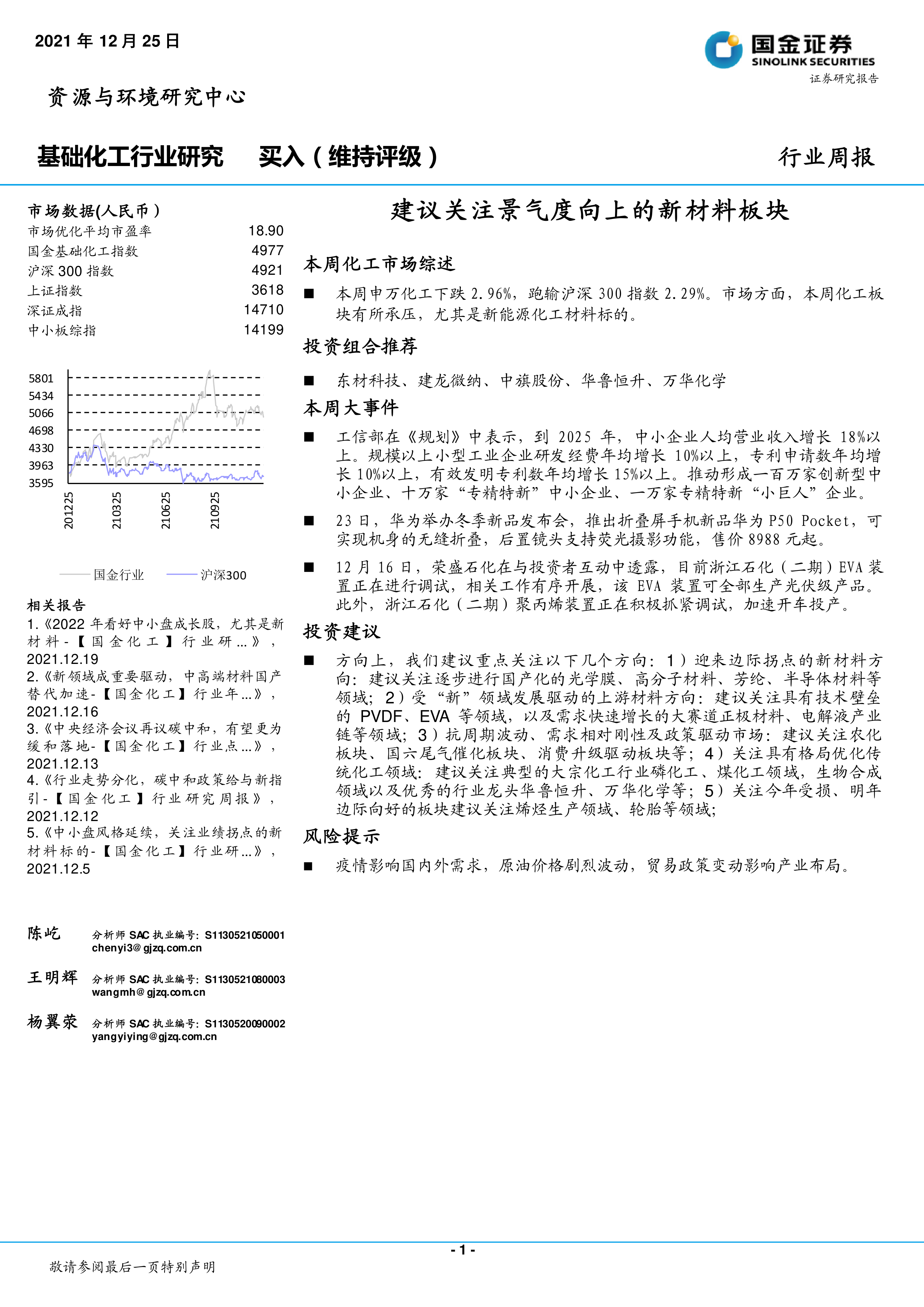 基础化工行业研究:建议关注景气度向上的新材料板块