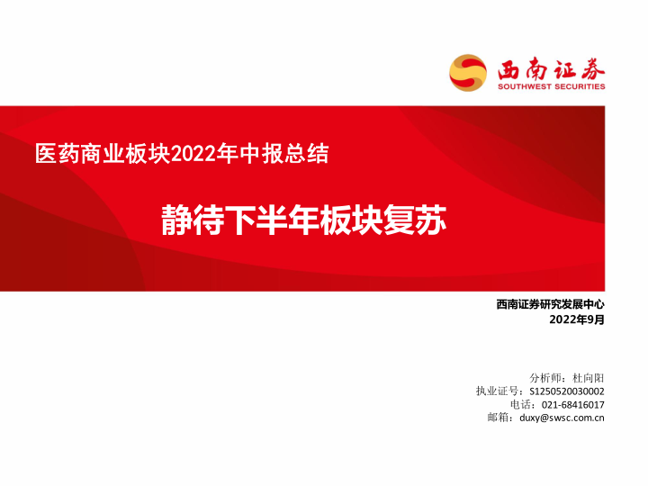 本报告基于西南证券研究发展中心对医药商业板块2022年中报的分析,核心观点如下: