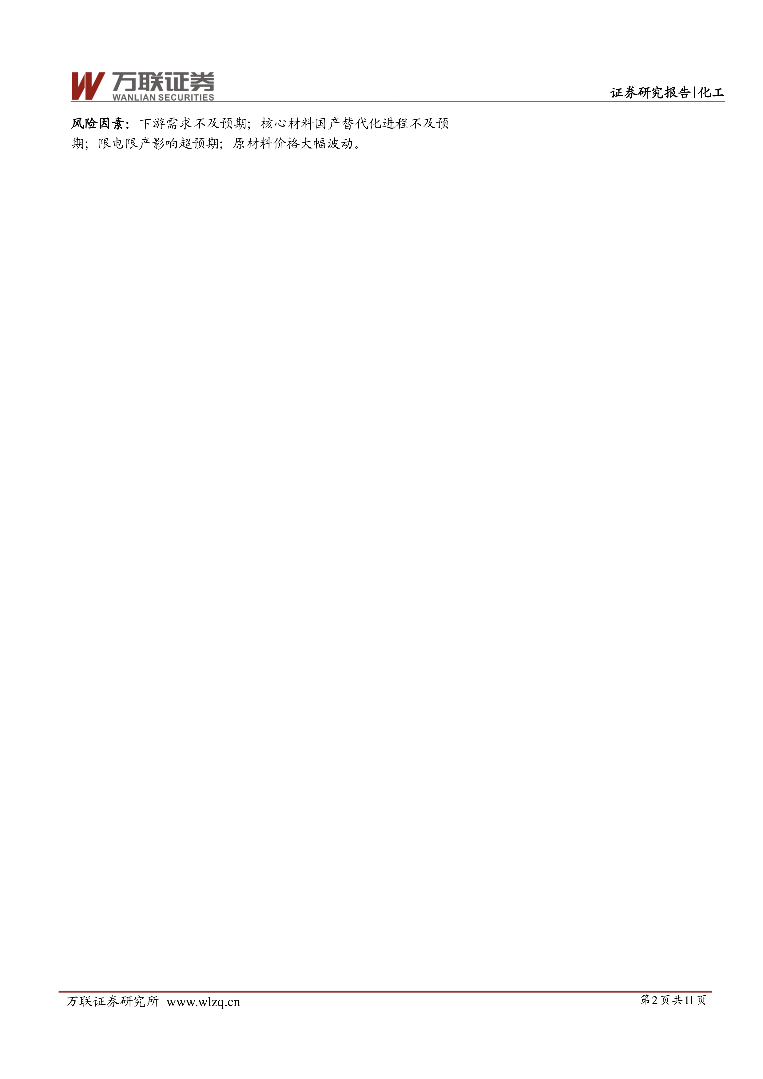 风险因素:下游需求不及预期;核心材料国产替代化进程不及预期;限电限产影响超预期;原材料价格大幅波动。