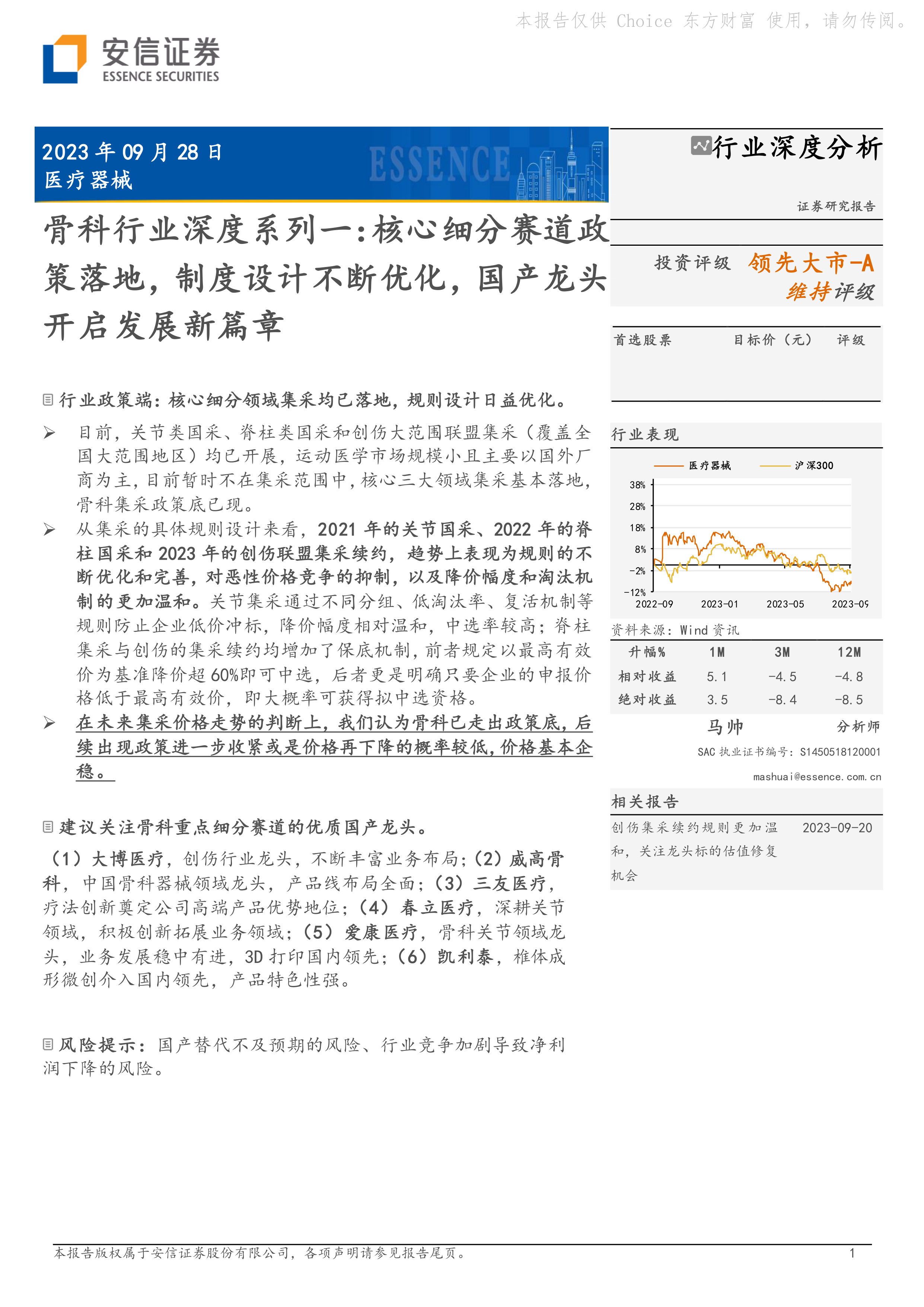 建议关注骨科重点细分赛道的优质国产龙头。