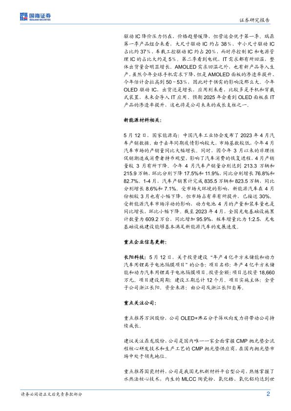 本报告主要从半导体材料、显示材料、新能源材料和其他材料四个方面,结合行业信息更新、重点企业信息更新以及板块数据跟踪,对化工新材料行业进行分析。