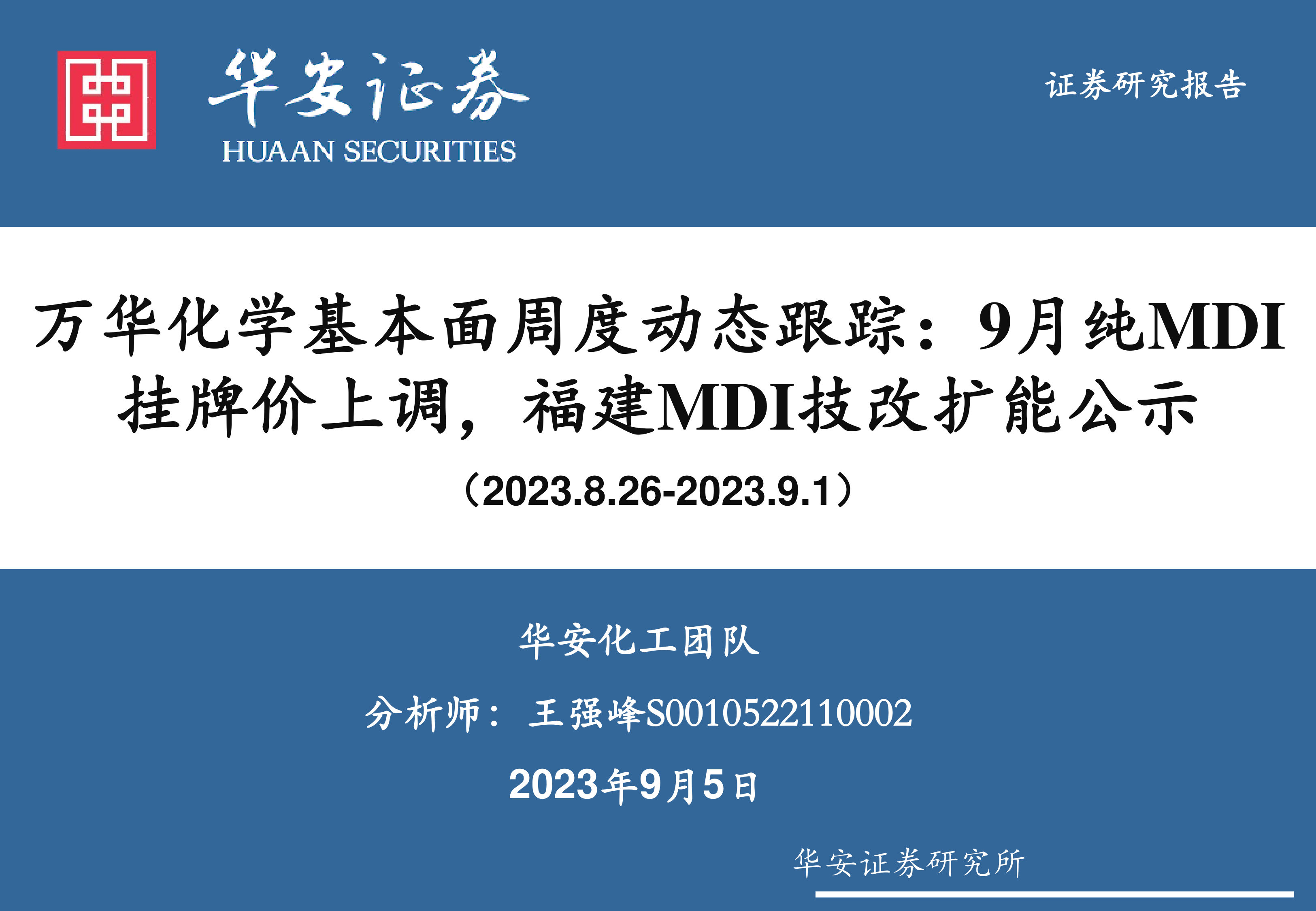 万华化学基本面周度动态跟踪:9月纯MDI挂牌价上调,福建MDI技改扩能公示