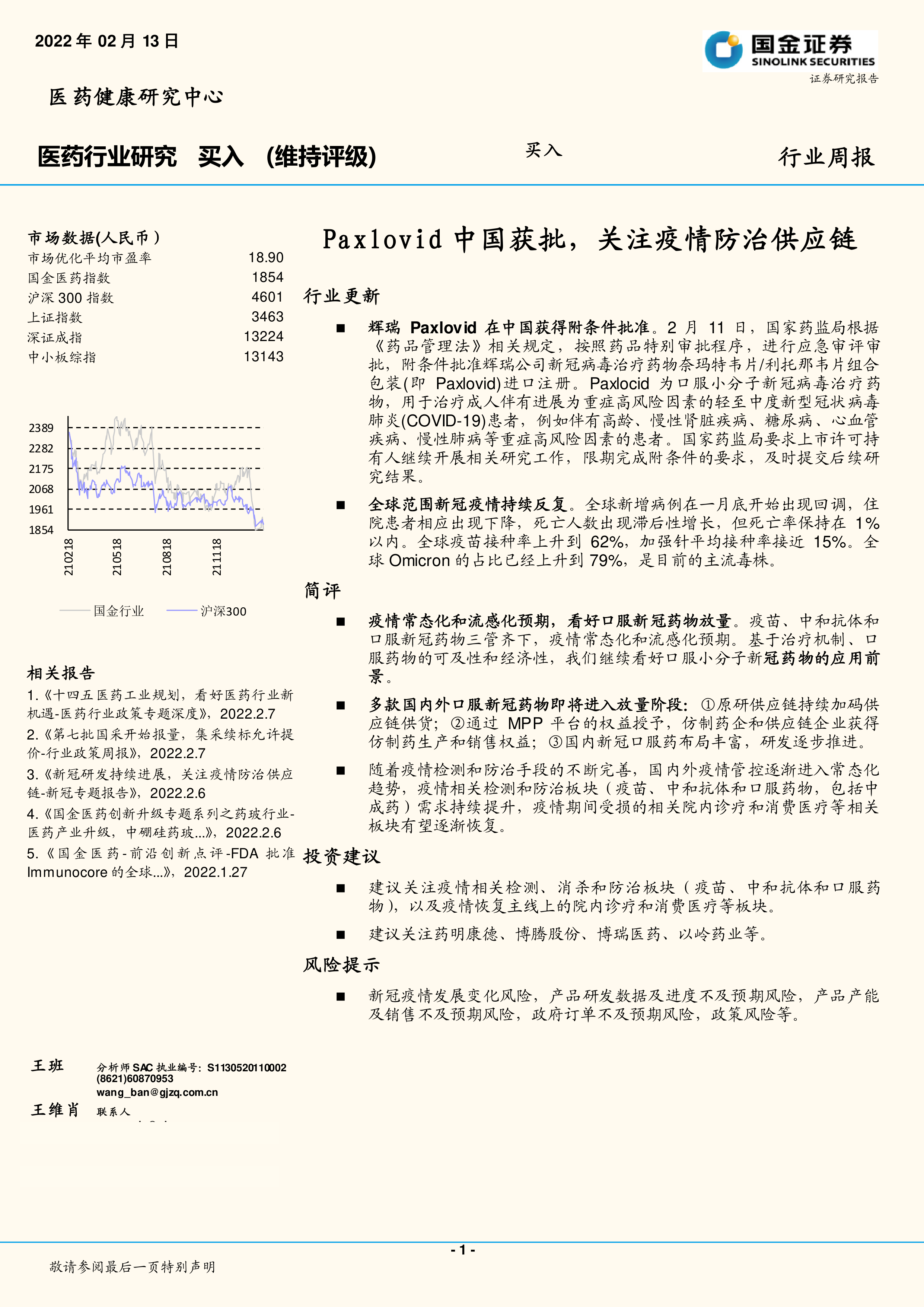 医药行业研究:Paxlovid中国获批,关注疫情防治供应链