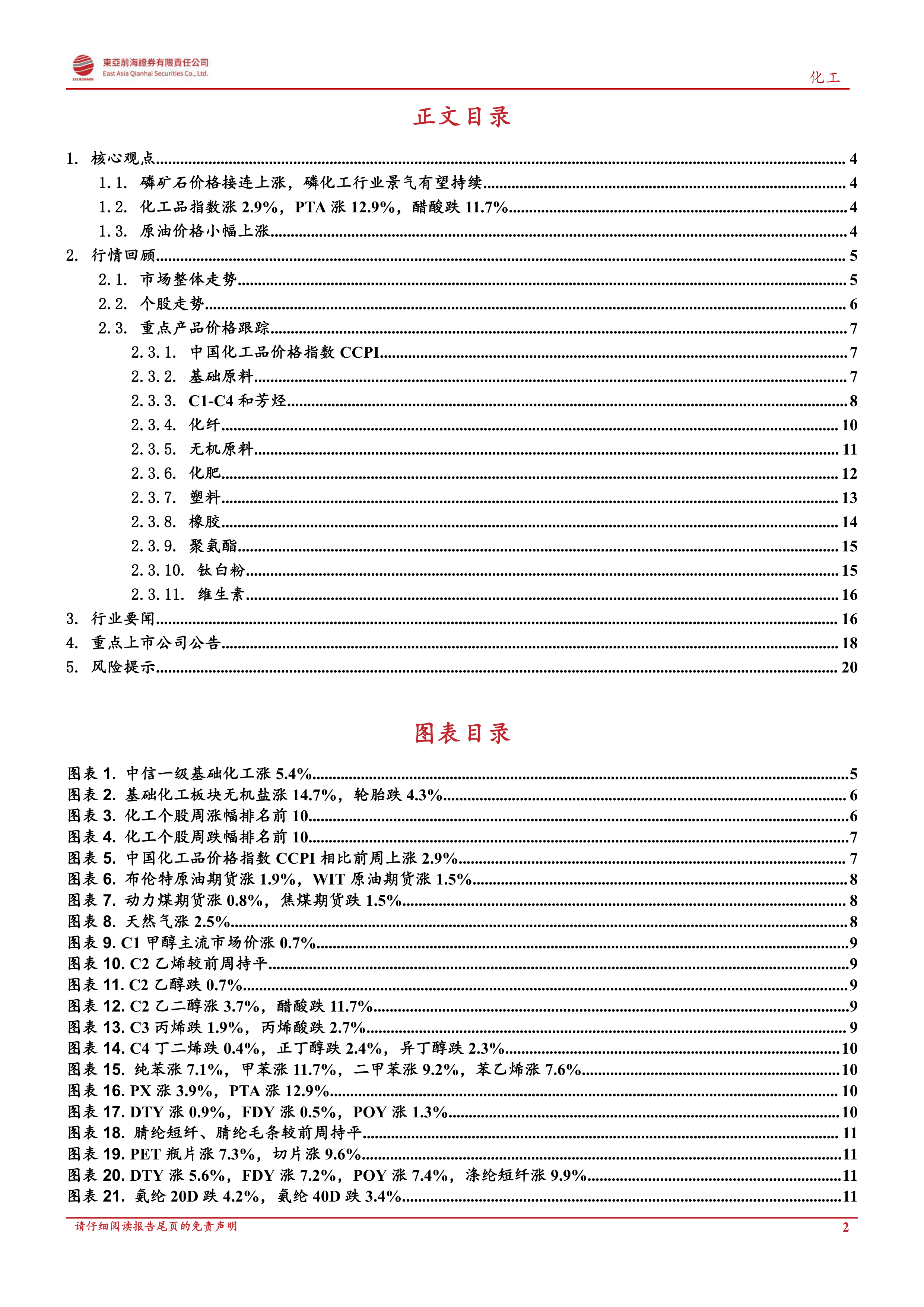 报告回顾了上周化工市场整体走势和个股表现: