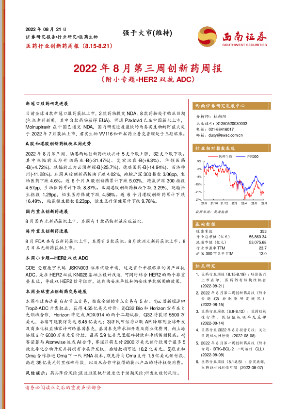 2022年8月第三周创新药周报(附小专题-HER2双抗ADC)