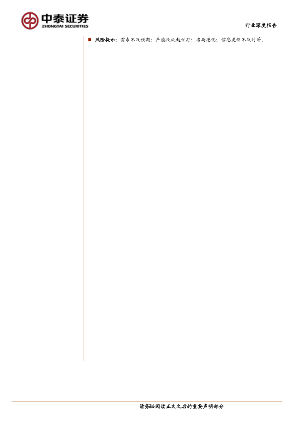 风险提示:需求不及预期;产能投放超预期;格局恶化;信息更新不及时等。