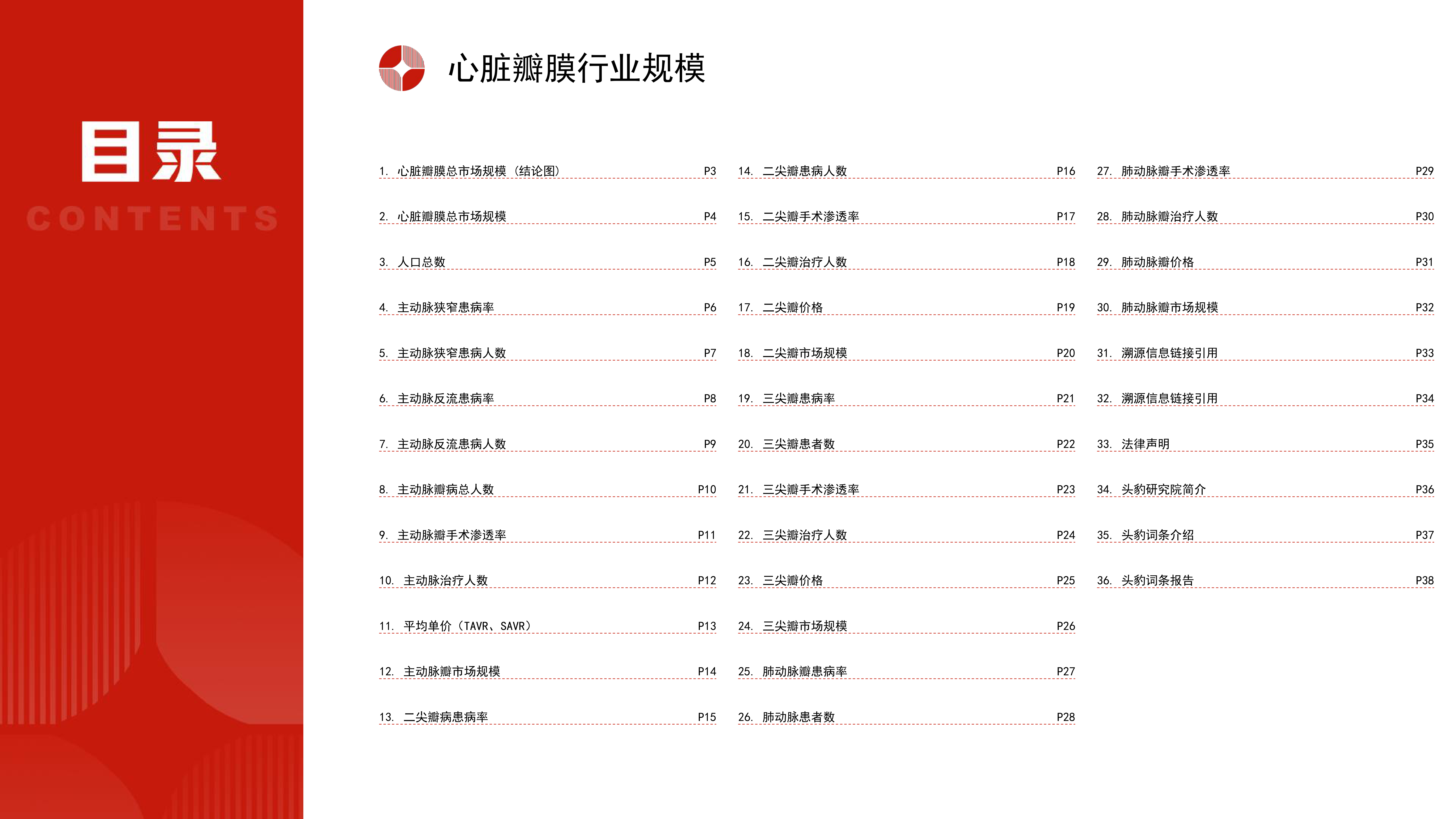 本报告详细分析了中国心脏瓣膜市场,涵盖了主动脉瓣、二尖瓣、三尖瓣和肺动脉瓣四个主要瓣膜类型。报告通过构建测算模型,结合人口数据、患病率、手术渗透率和平均价格等关键指标,对各瓣膜类型的市场规模进行了预测。