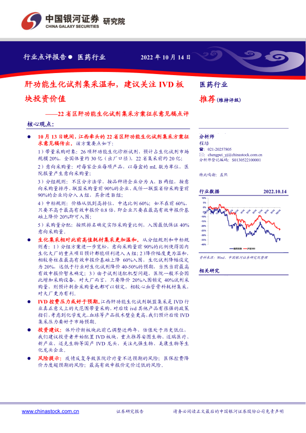 医药行业:22省区肝功能生化试剂集采方案征求意见稿点评-肝功能生化试剂集采温和,建议关注IVD板块投资价值